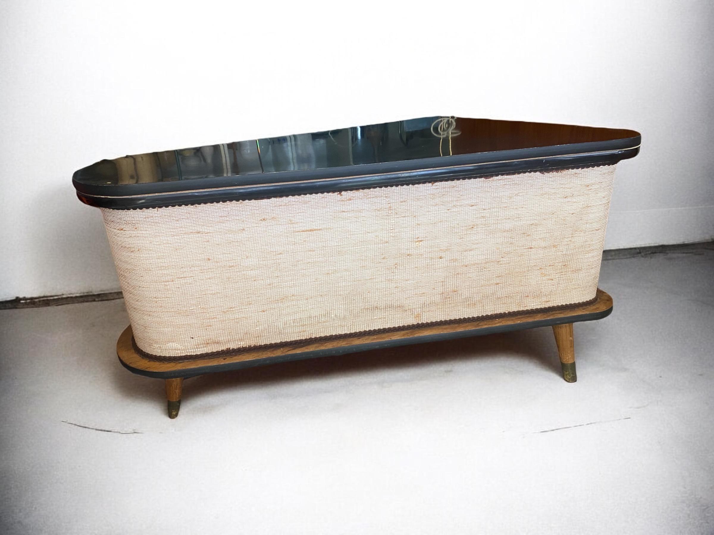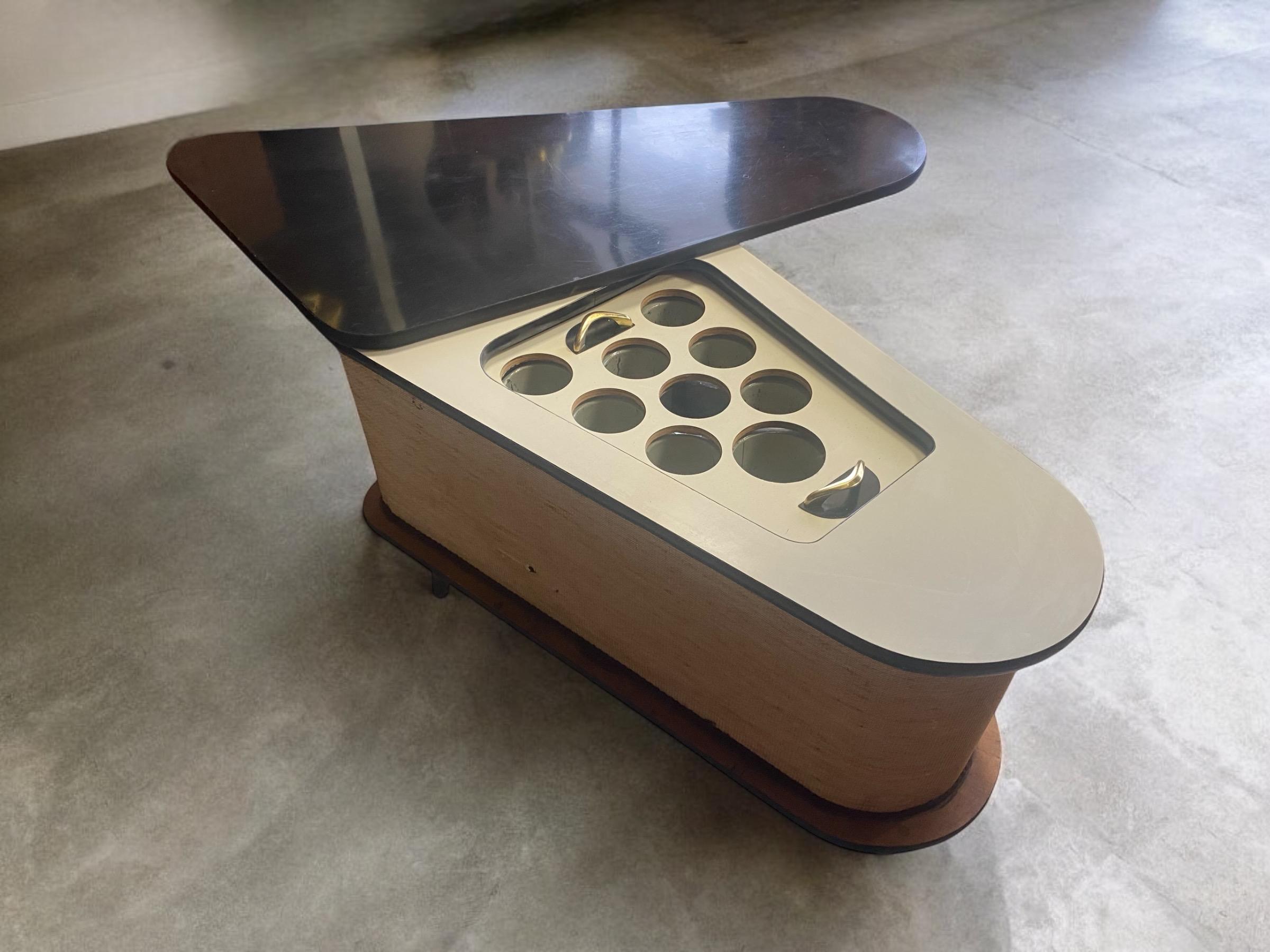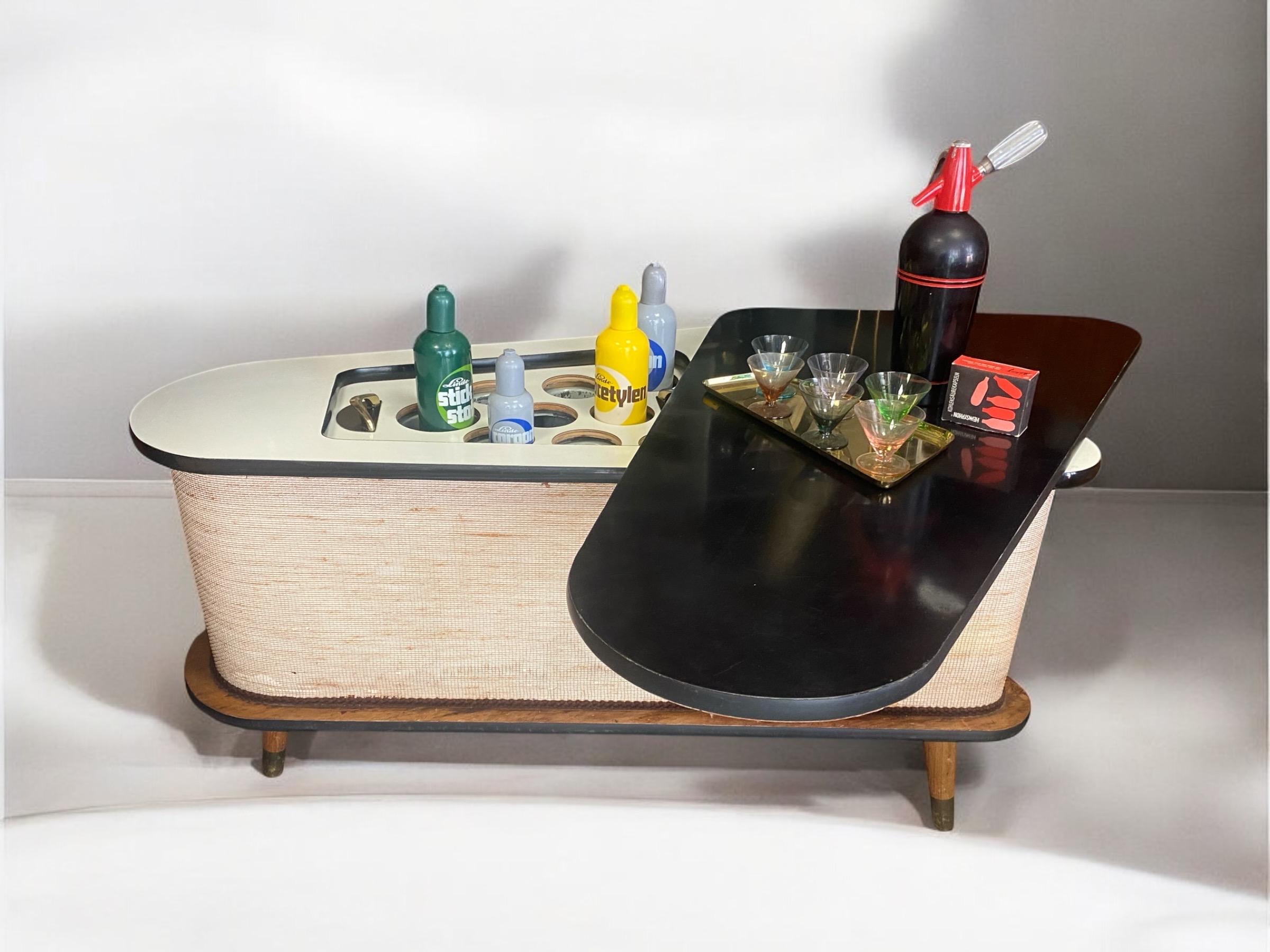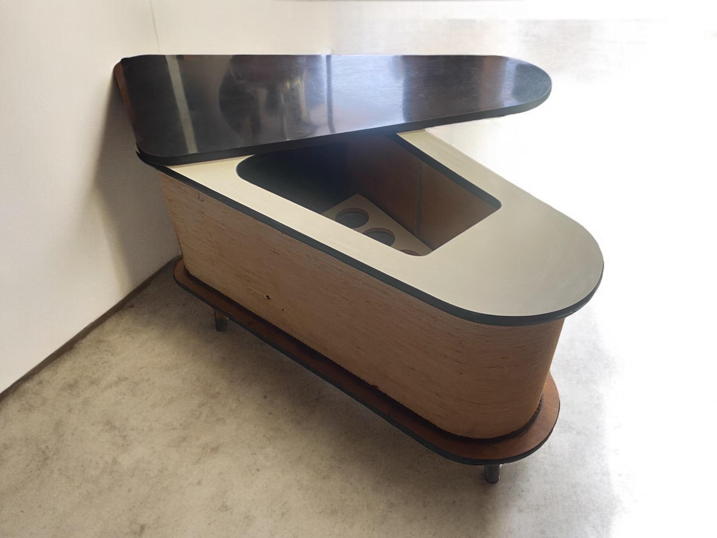 Beautiful, unusual home bar from the 1950s in kidney-shaped table form.