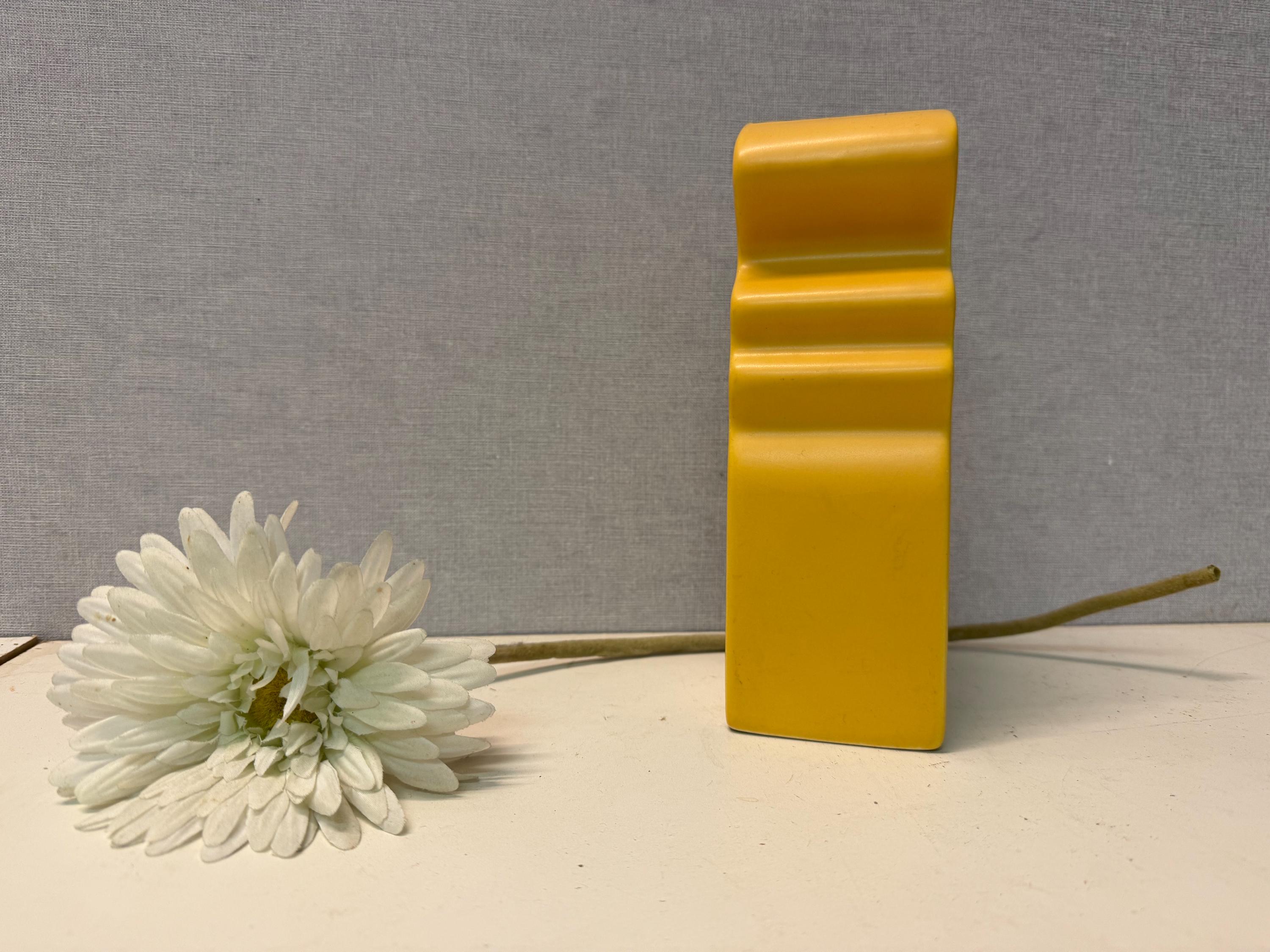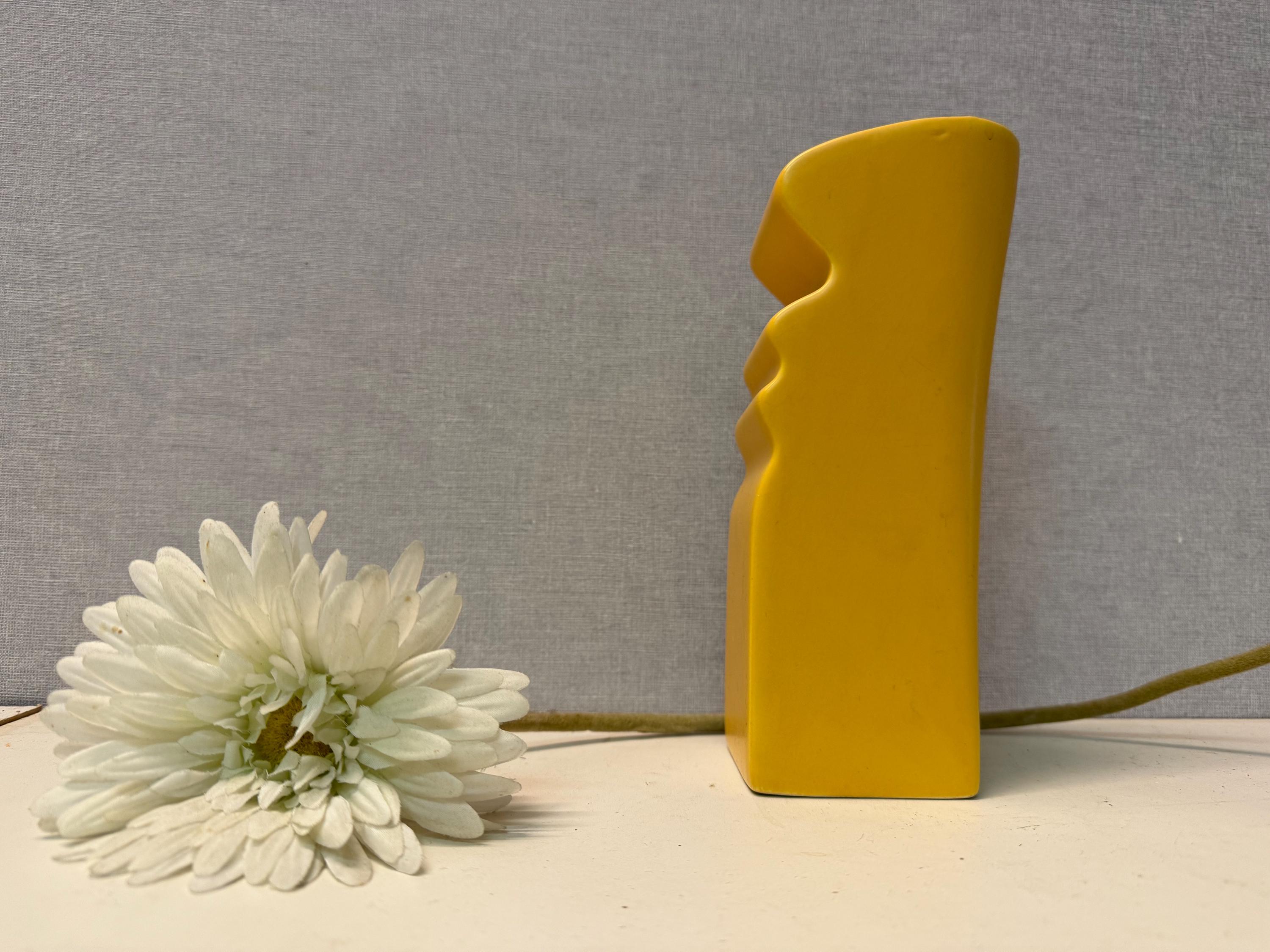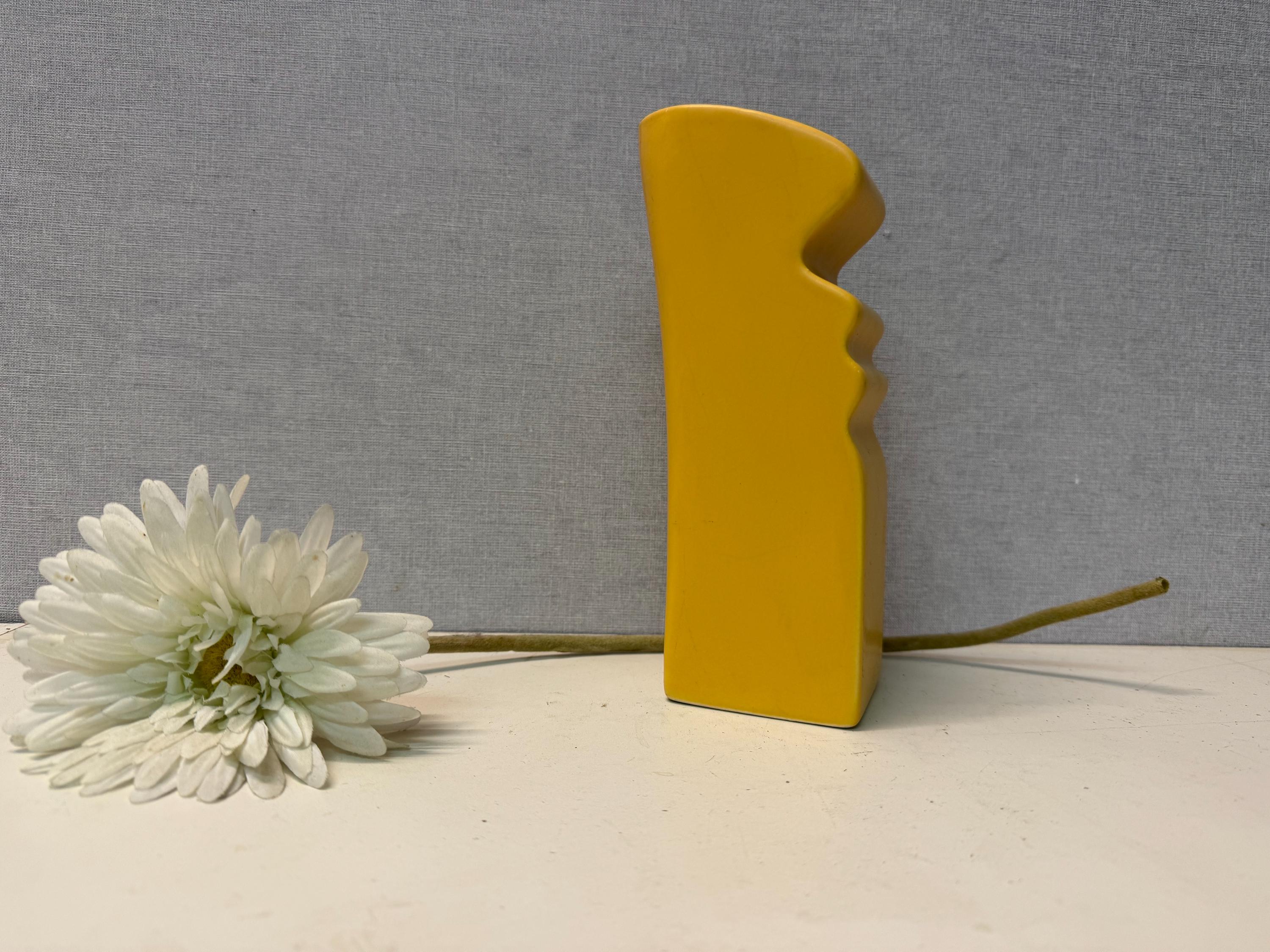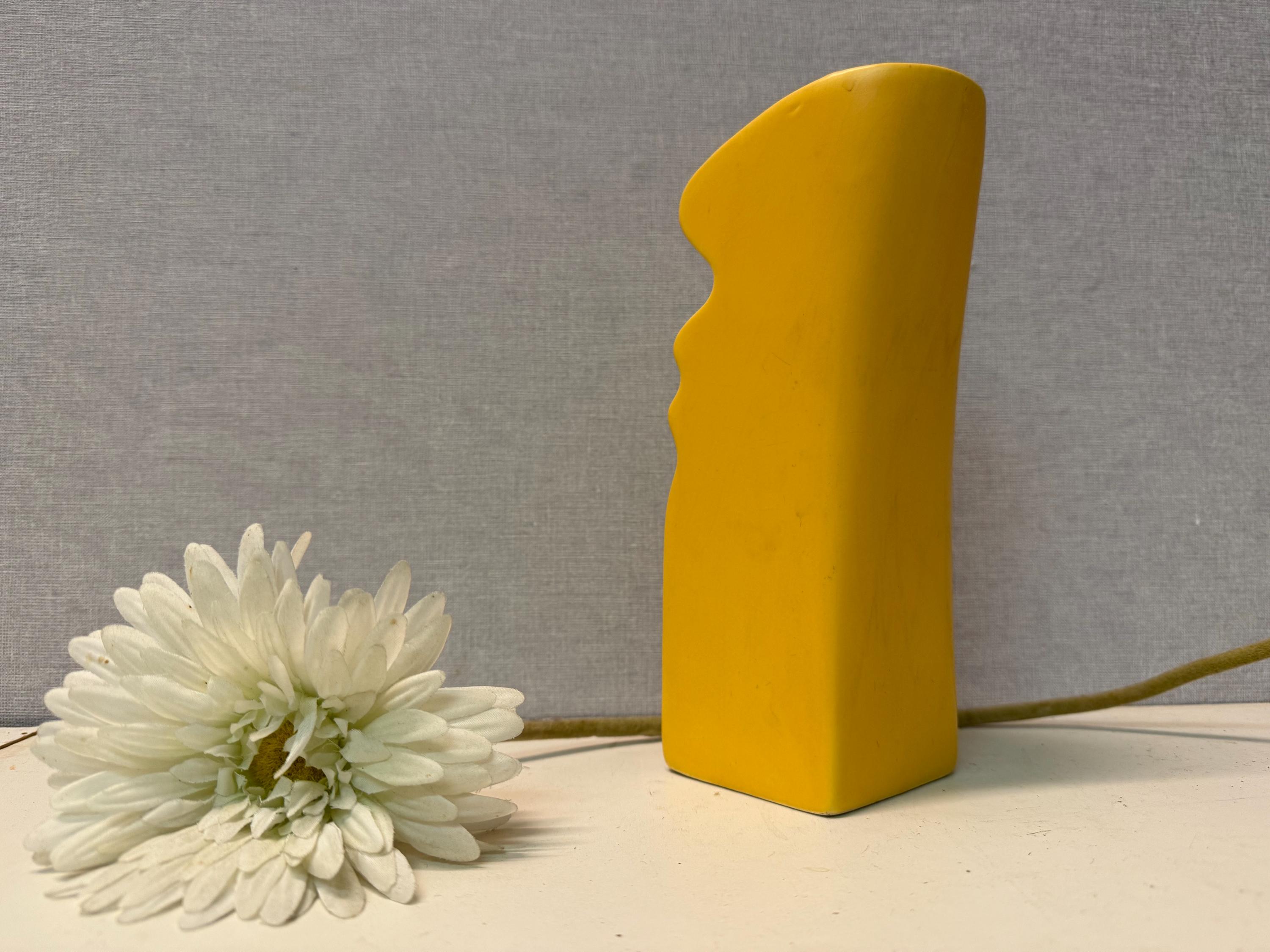 Beautiful, bright yellow postmodern vase by ASA Selection in the shape of a face. Vintage from the 1980s.