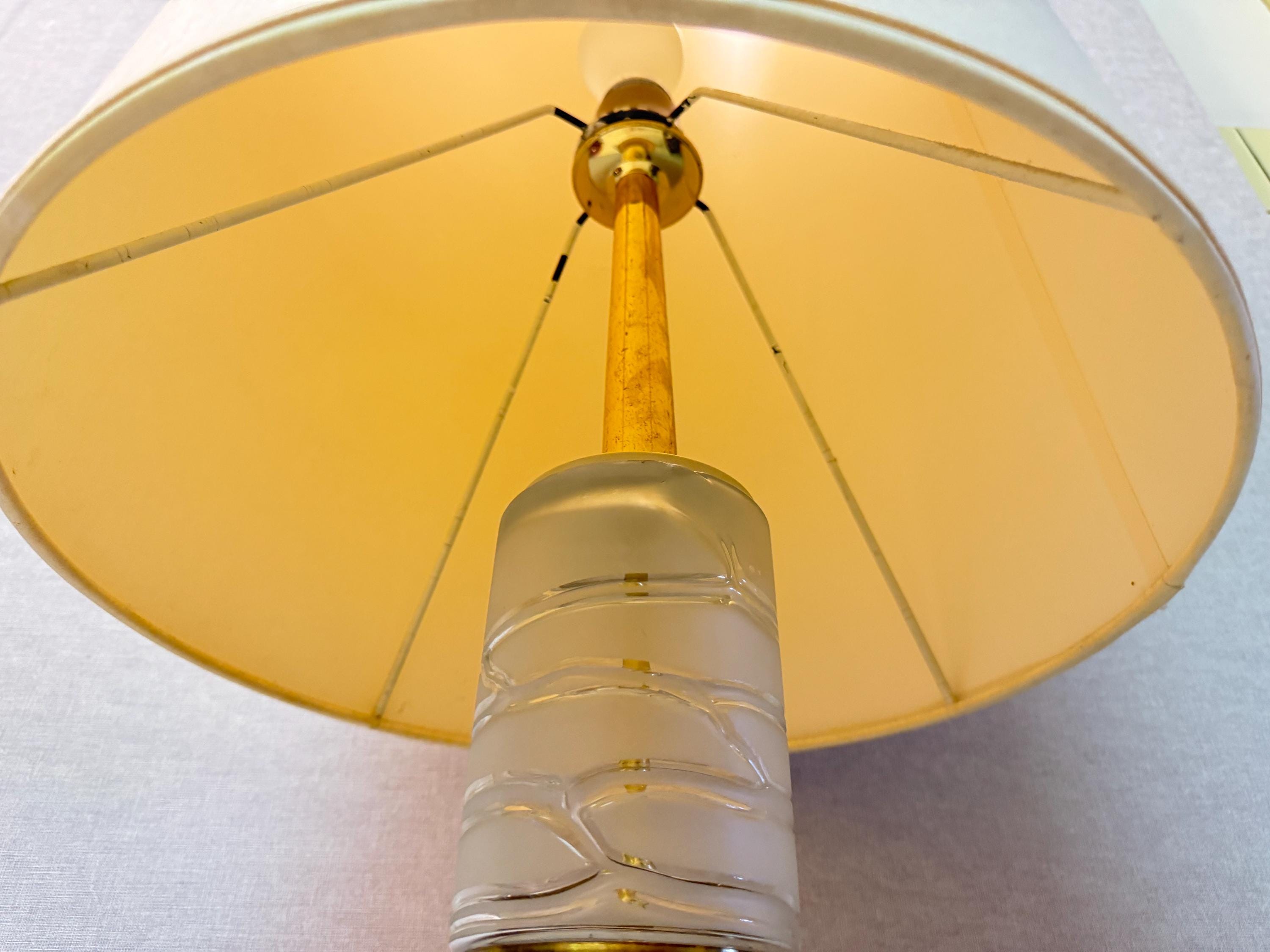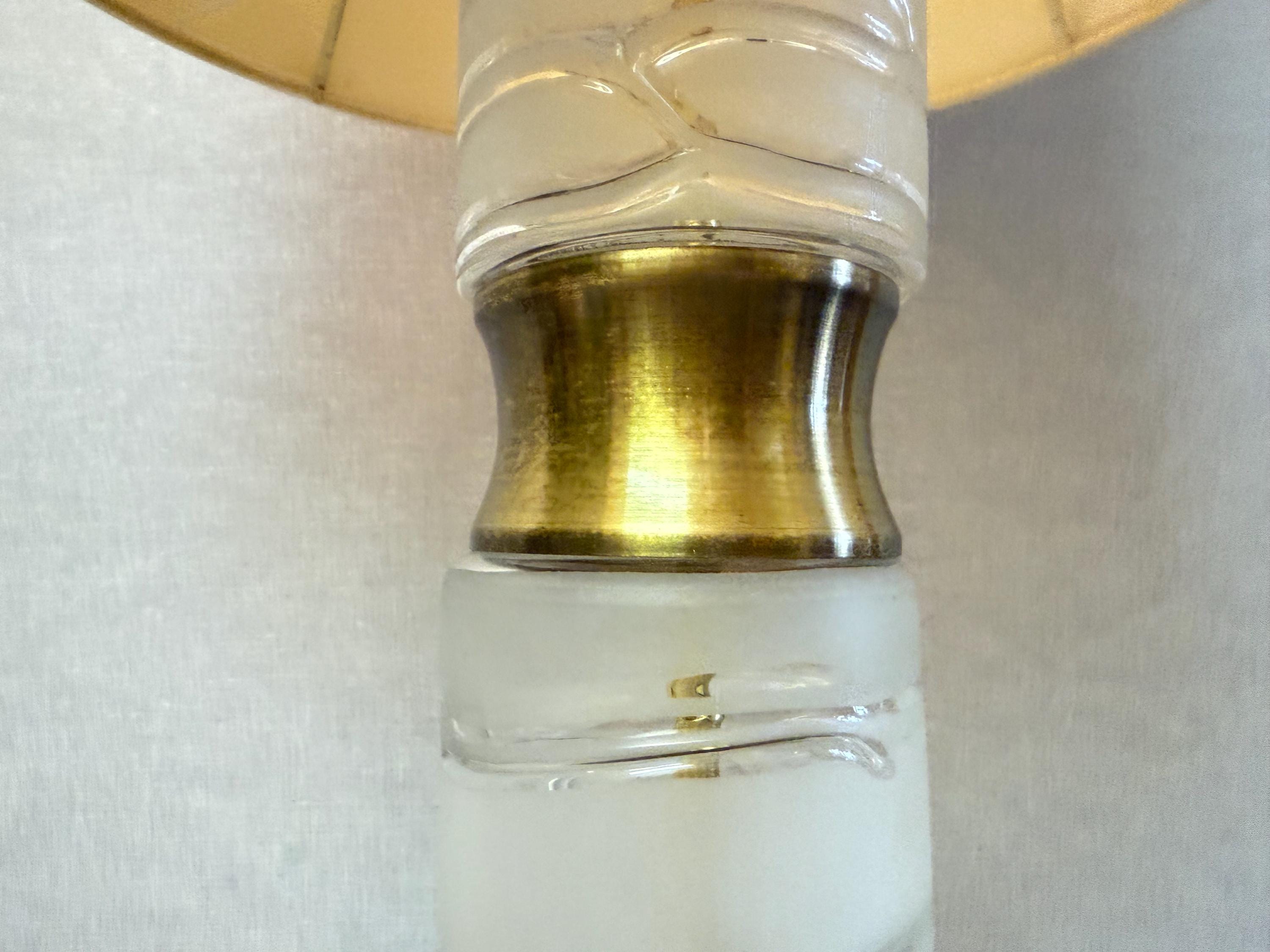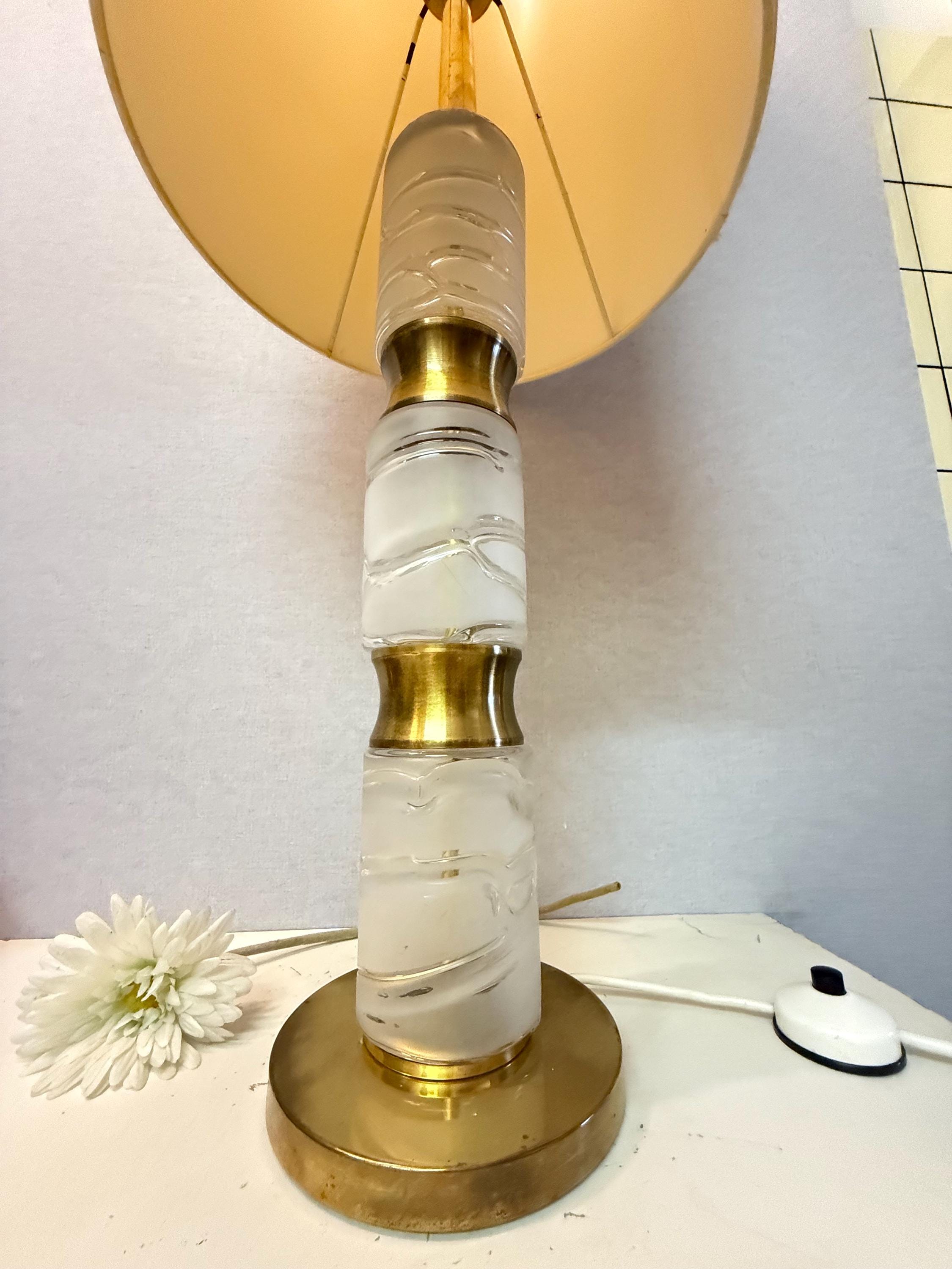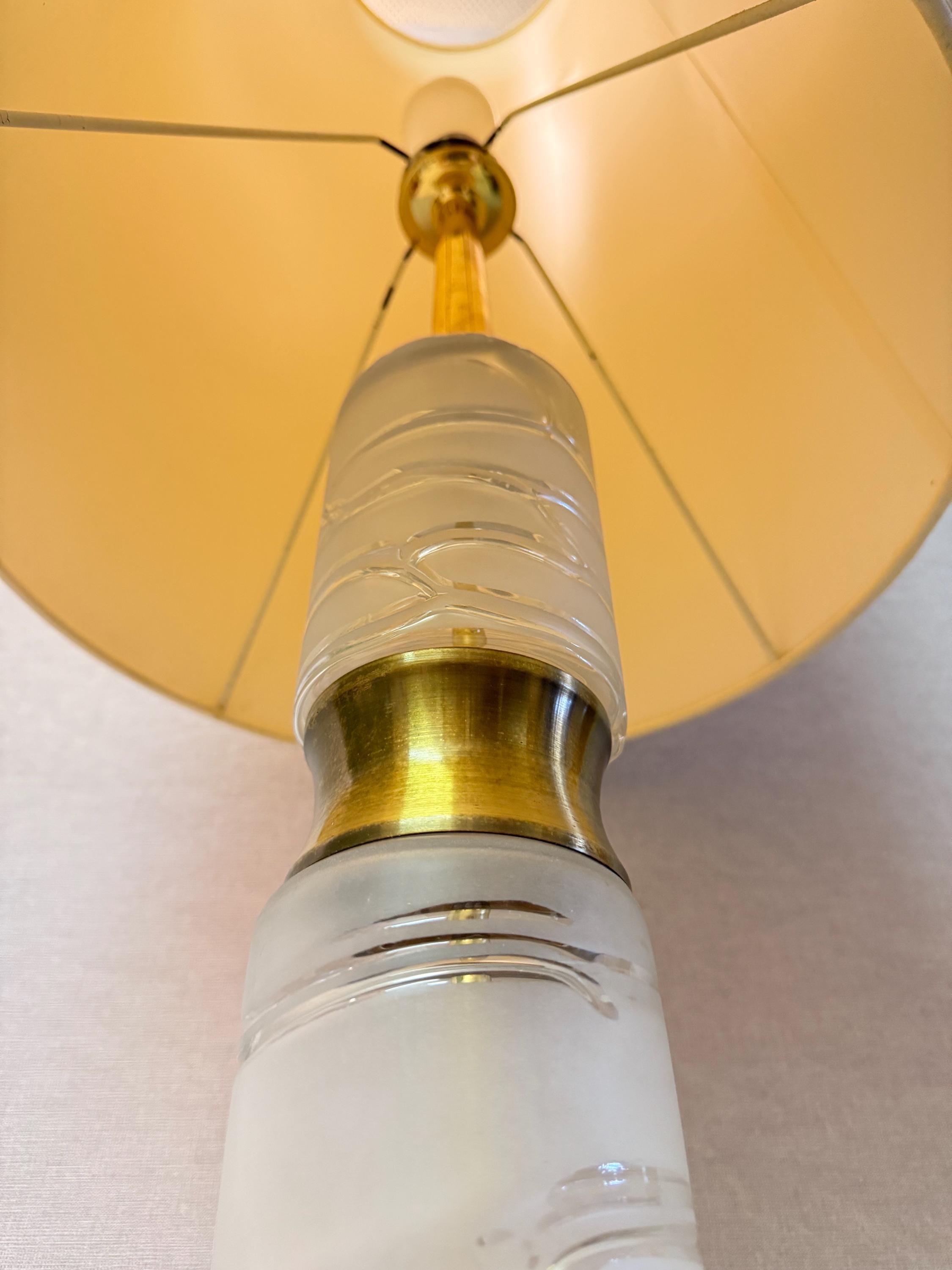 The base is made of frosted glass with gold accents in the Hollywood Regency style.