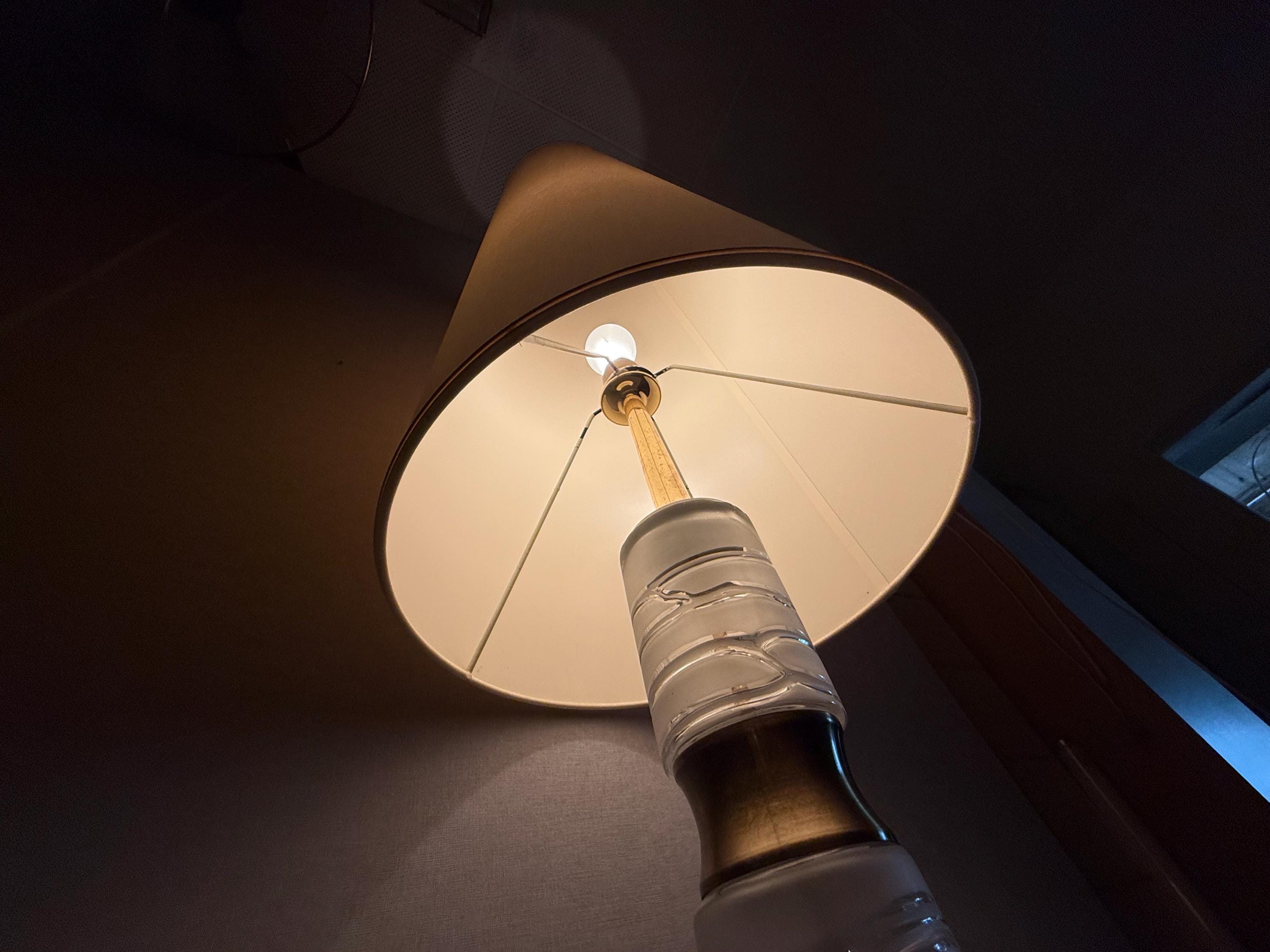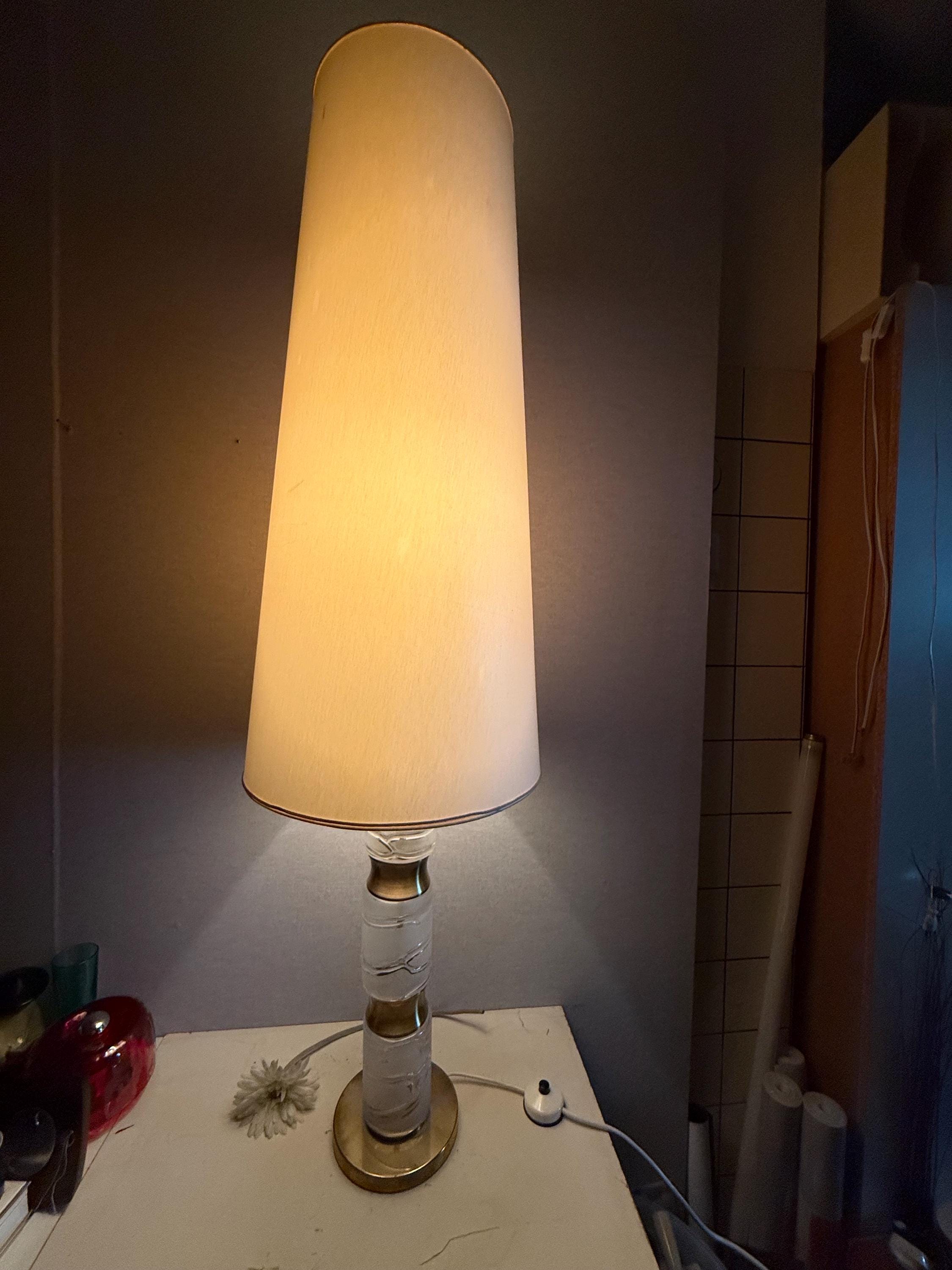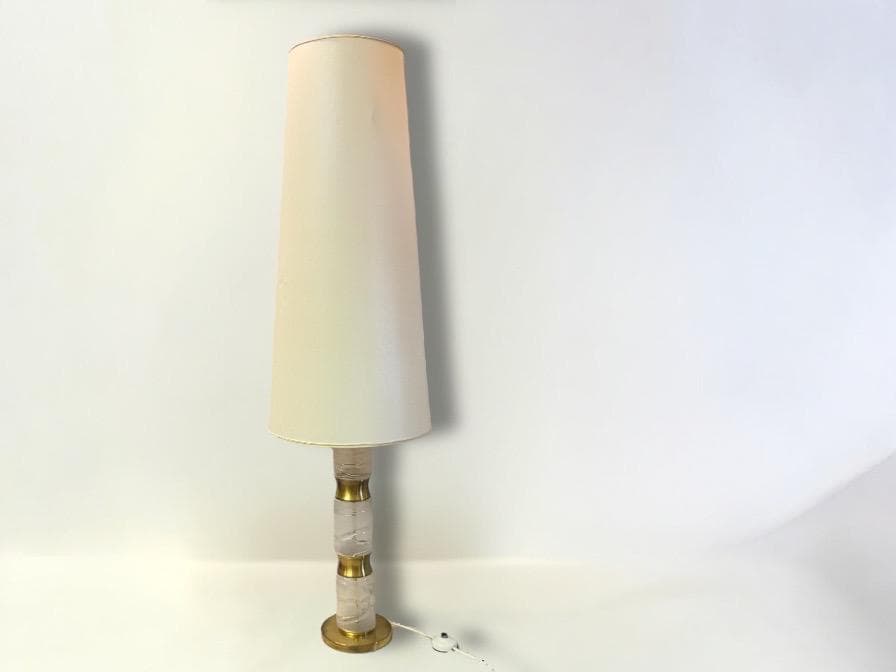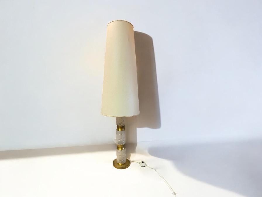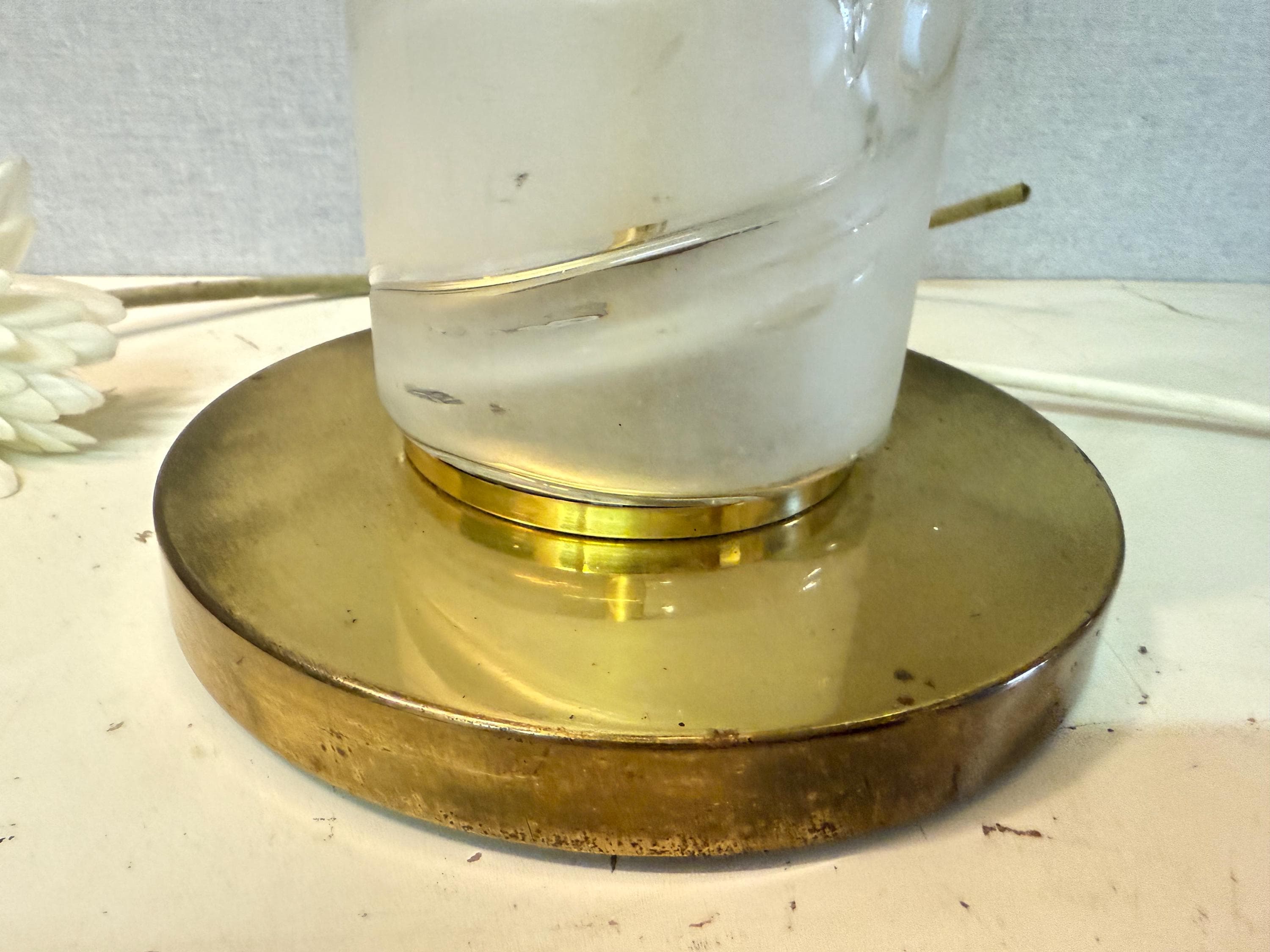 The base is made of frosted glass with gold accents in the Hollywood Regency style.