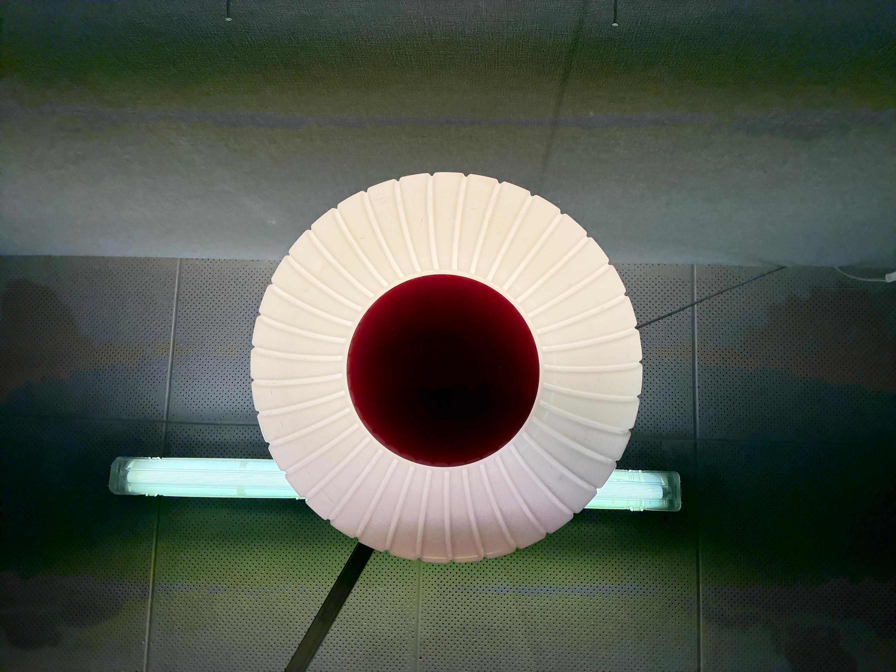 Here in the version with red metal top and ribbed plastic ring as diffuser.