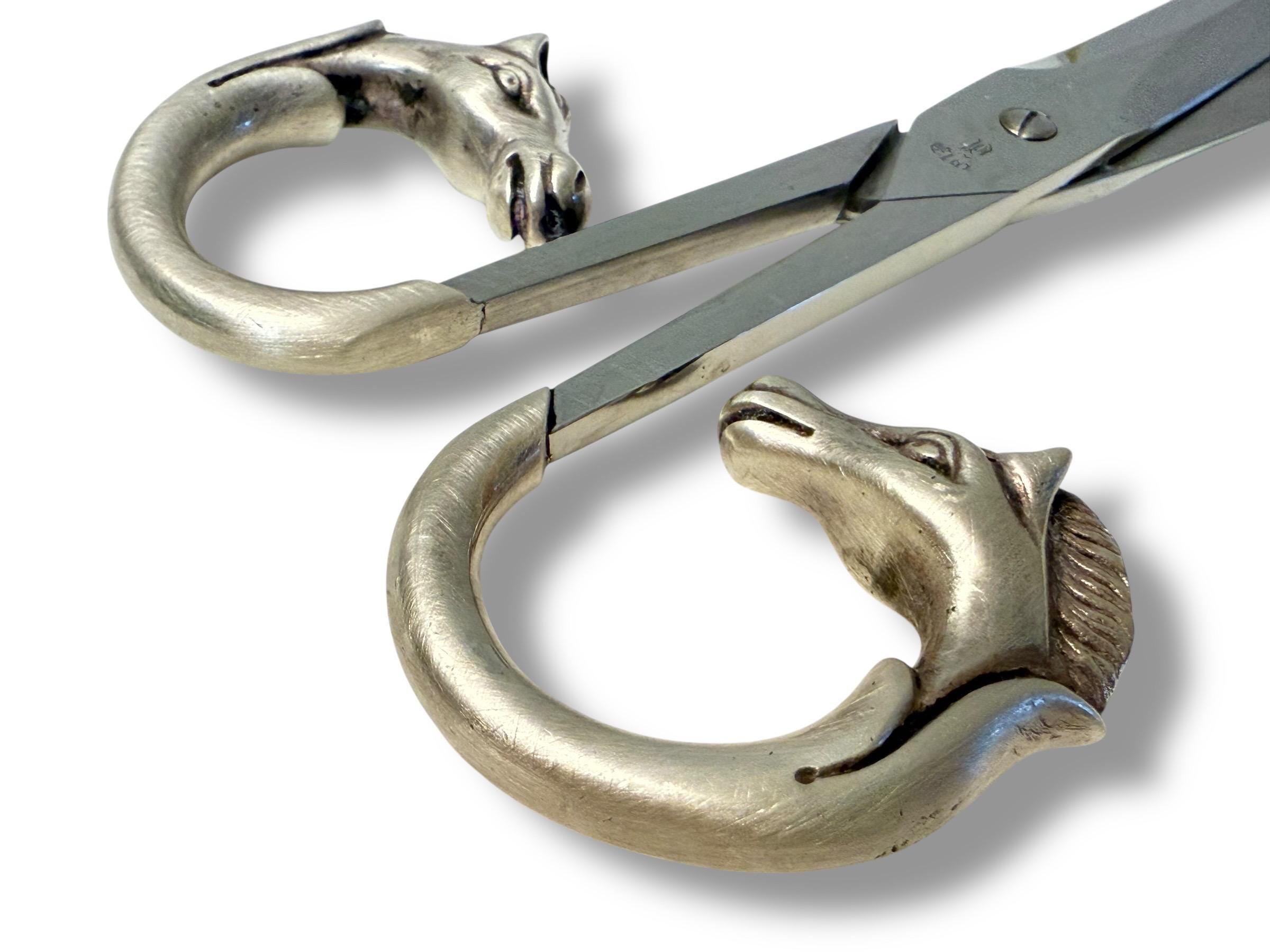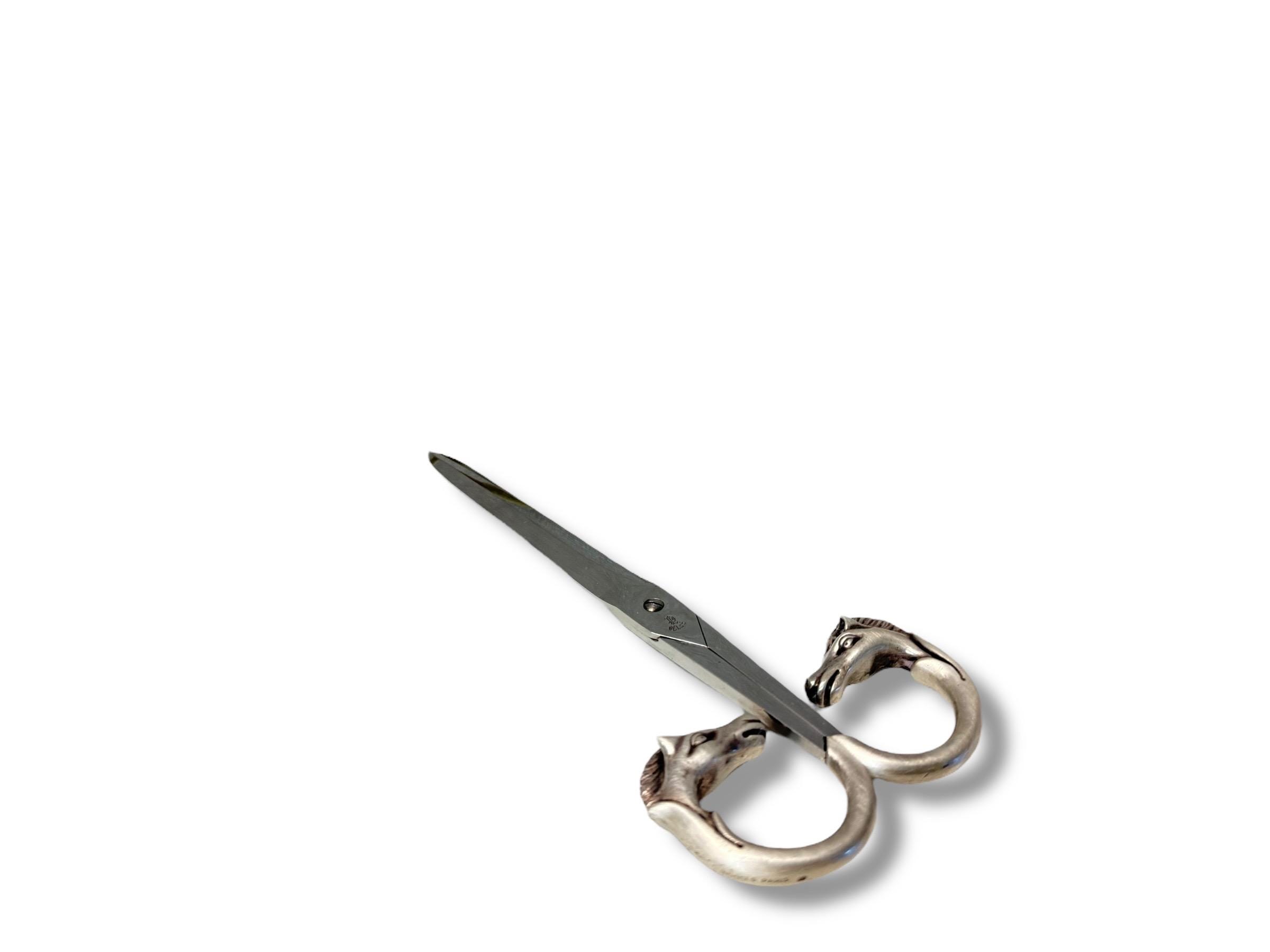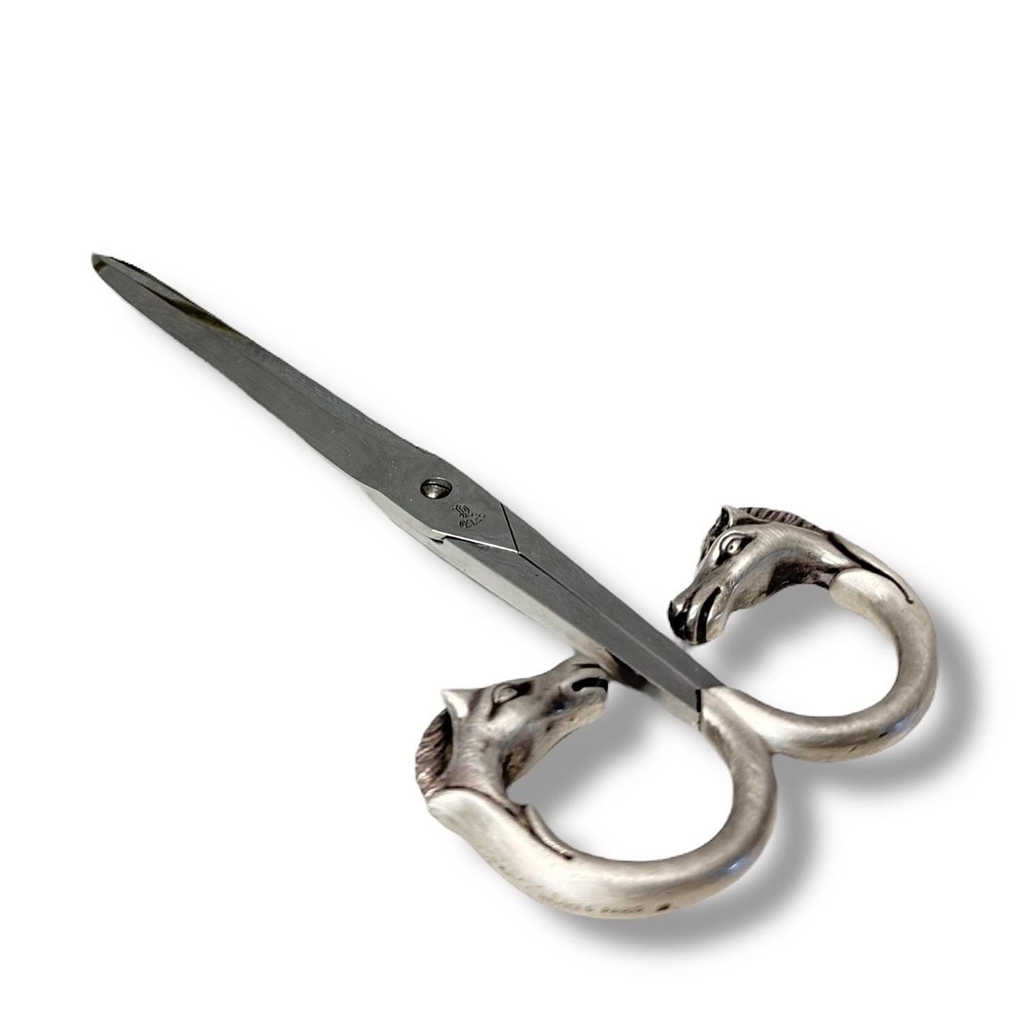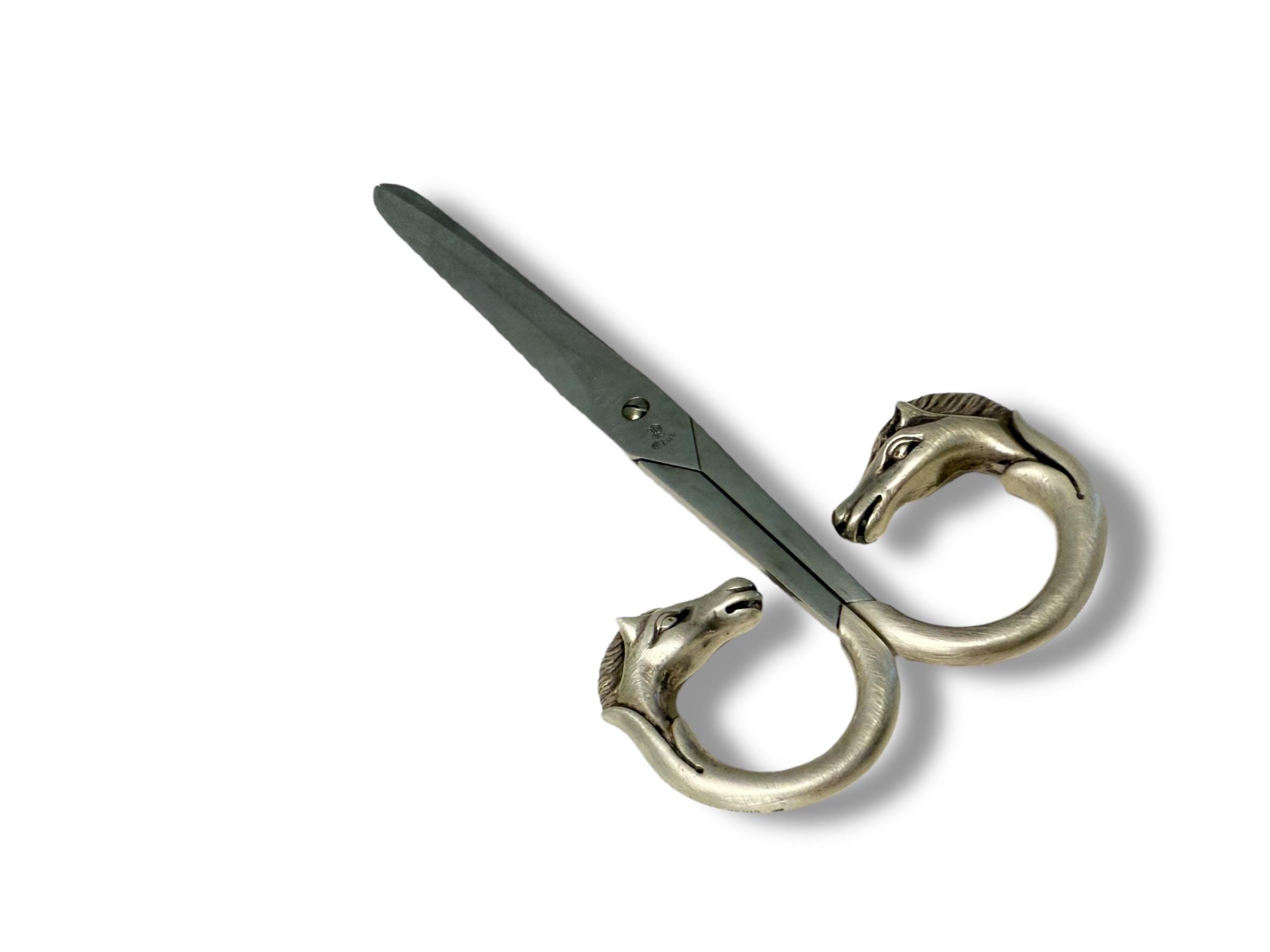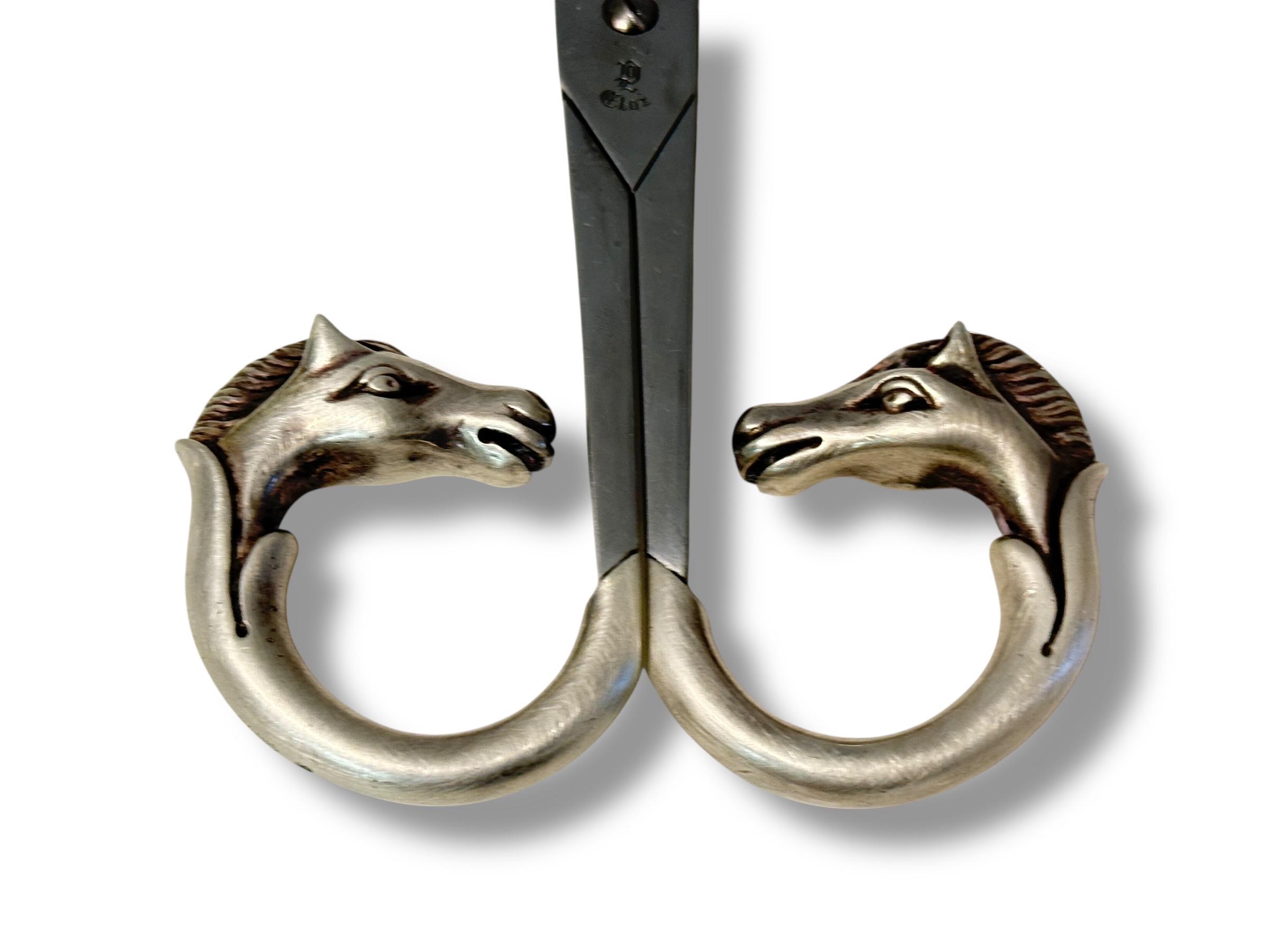 Vintage Hermès stainless steel scissors with sterling silver horse heads.