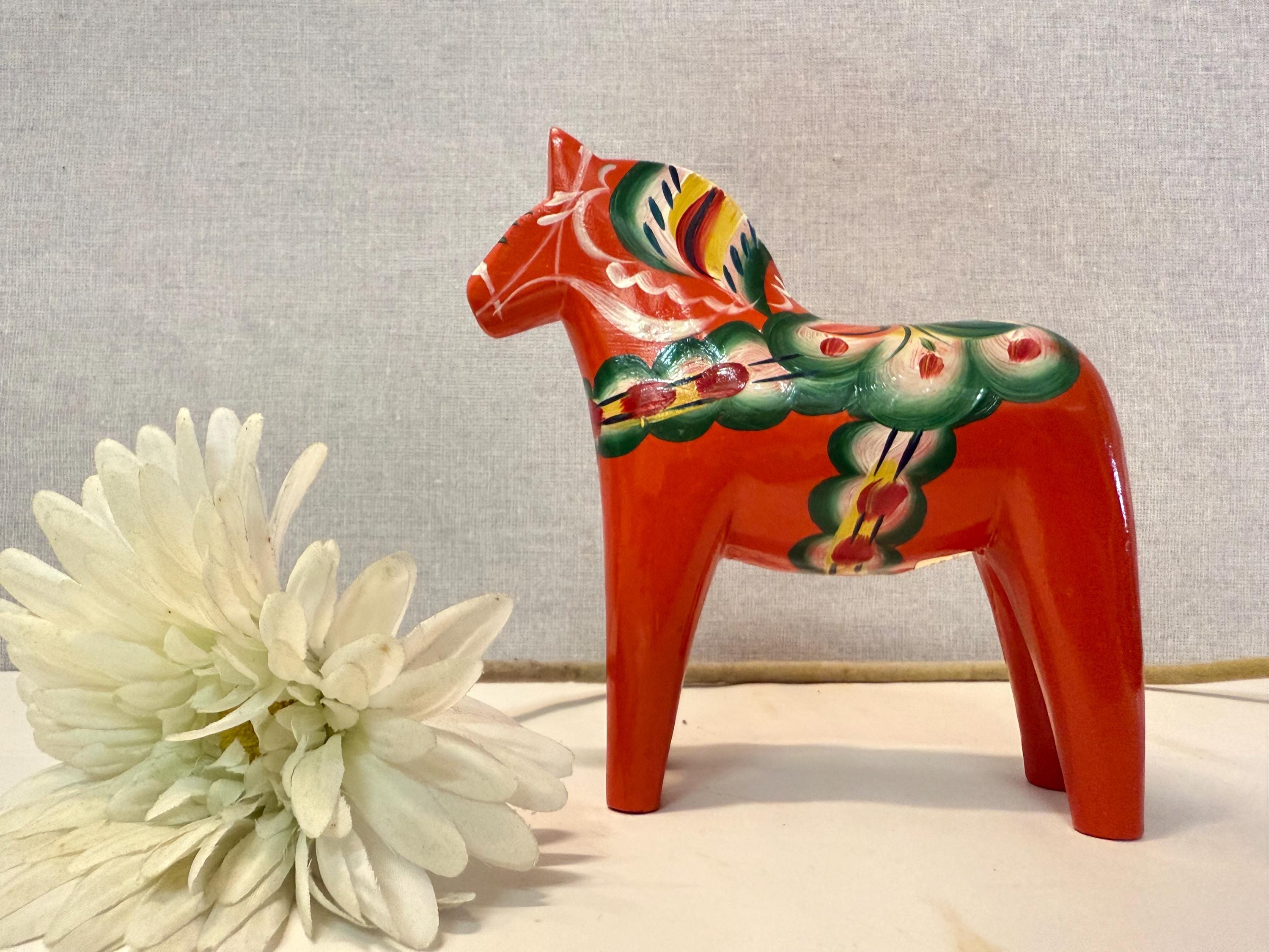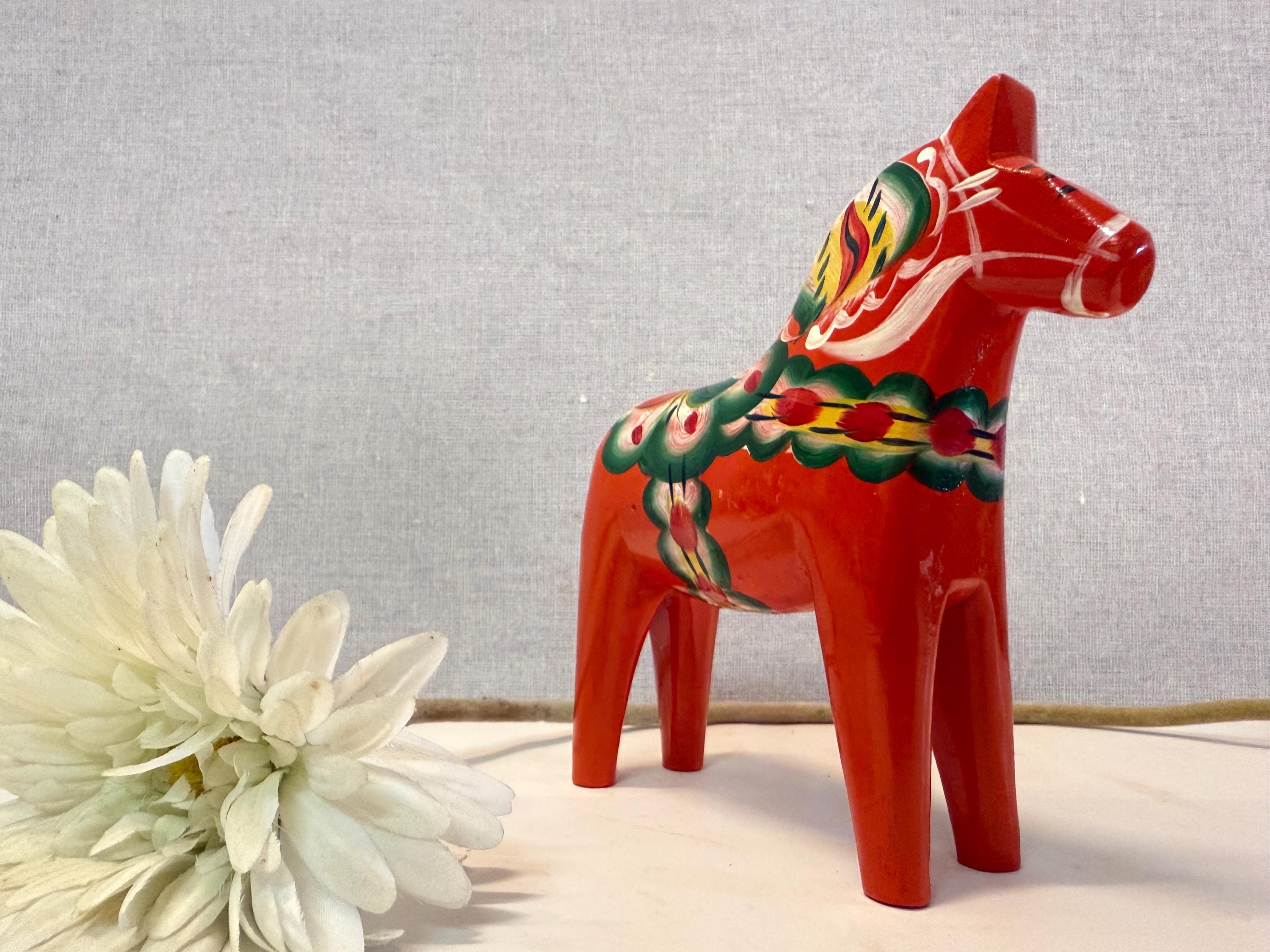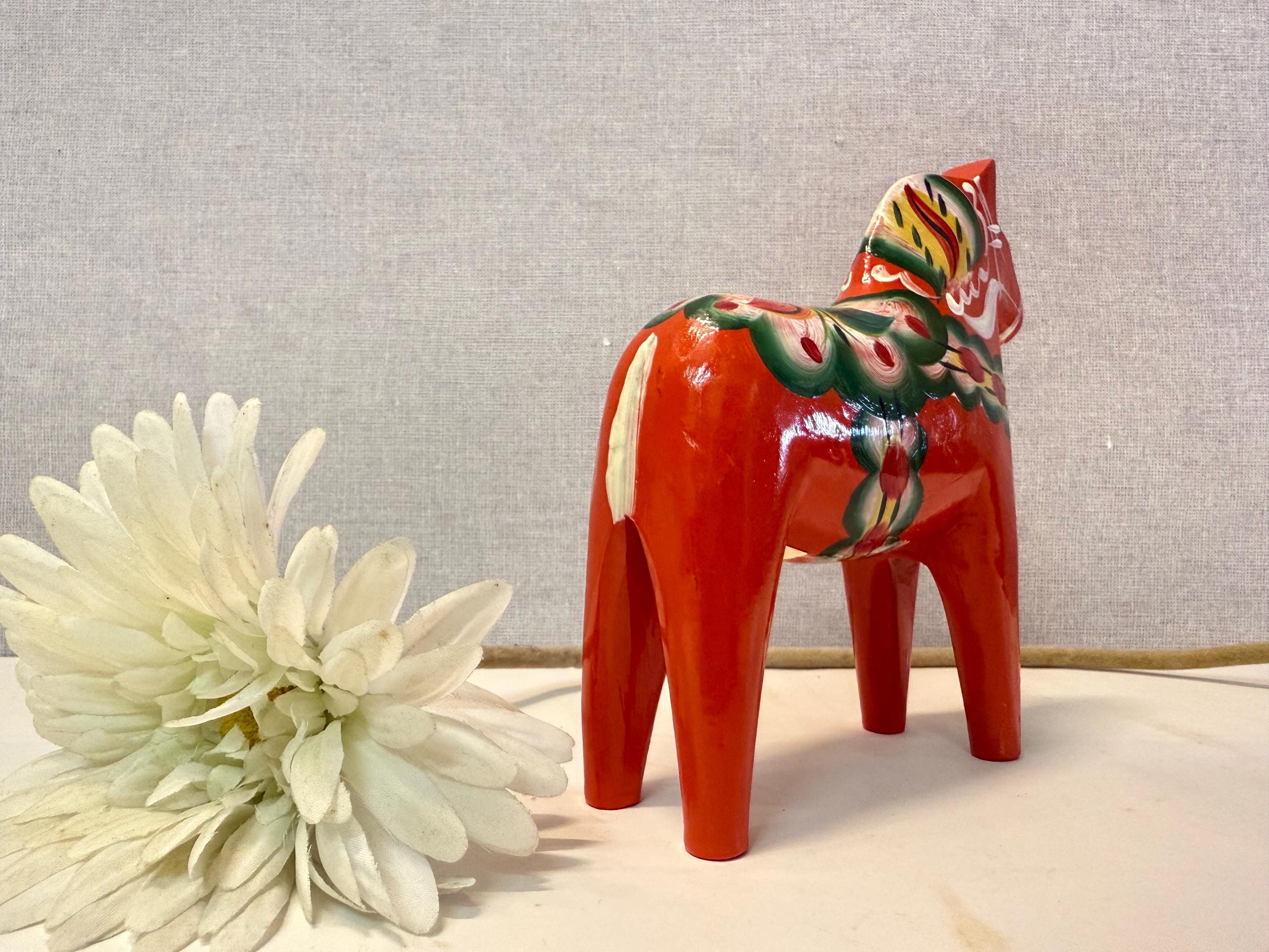 Dala horse by Nils Olsson for Akta Dalahemslojd Sweden, made of wood, 1970s Mid Century Vintage