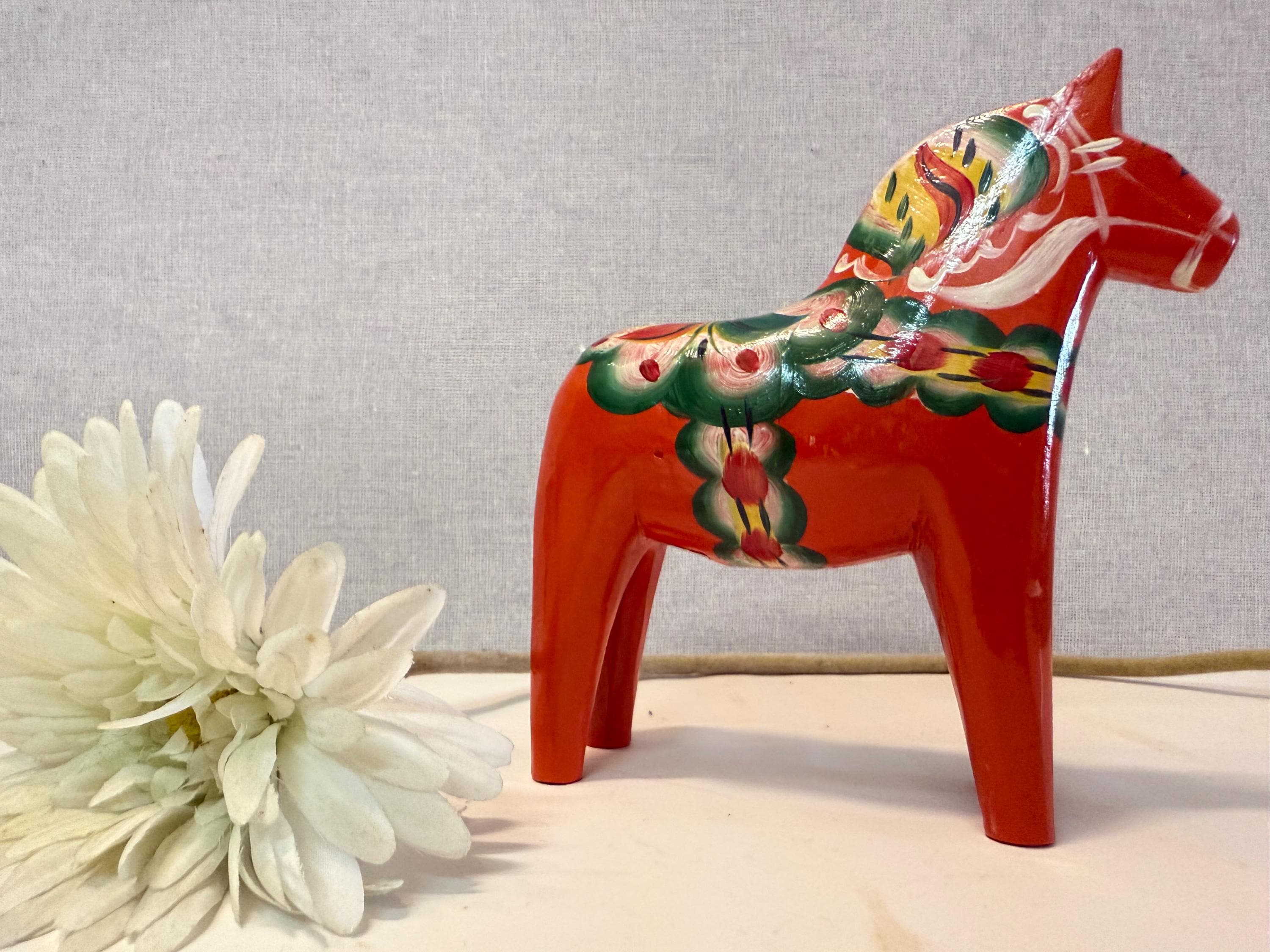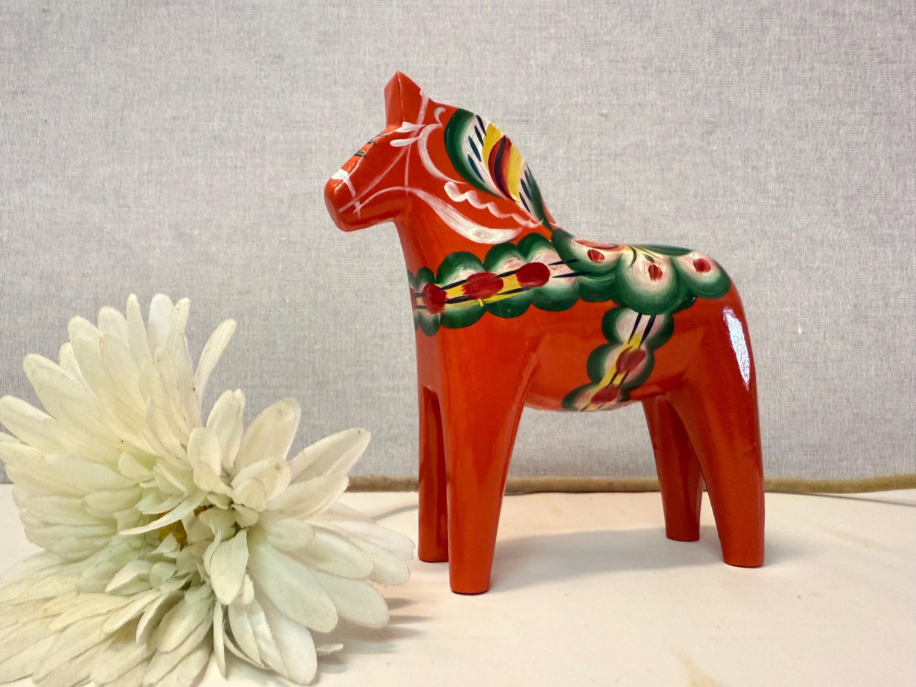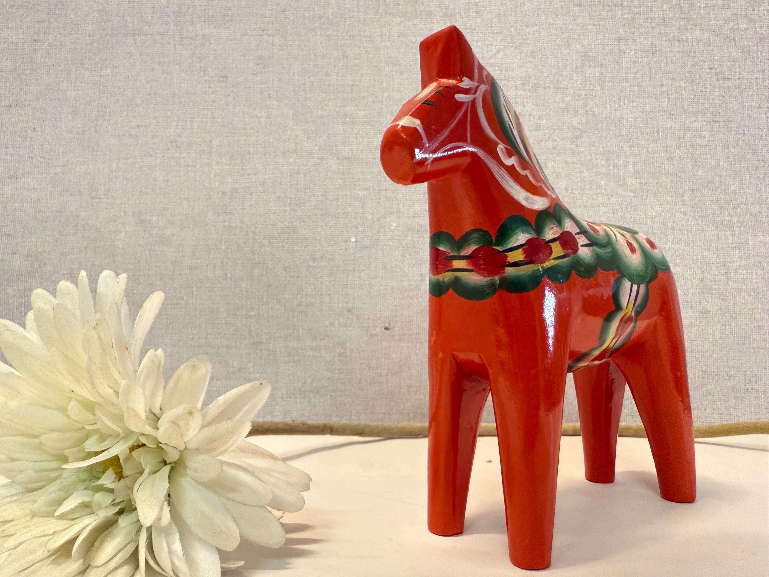 Dala horse by Nils Olsson for Akta Dalahemslojd Sweden, made of wood, 1970s Mid Century Vintage