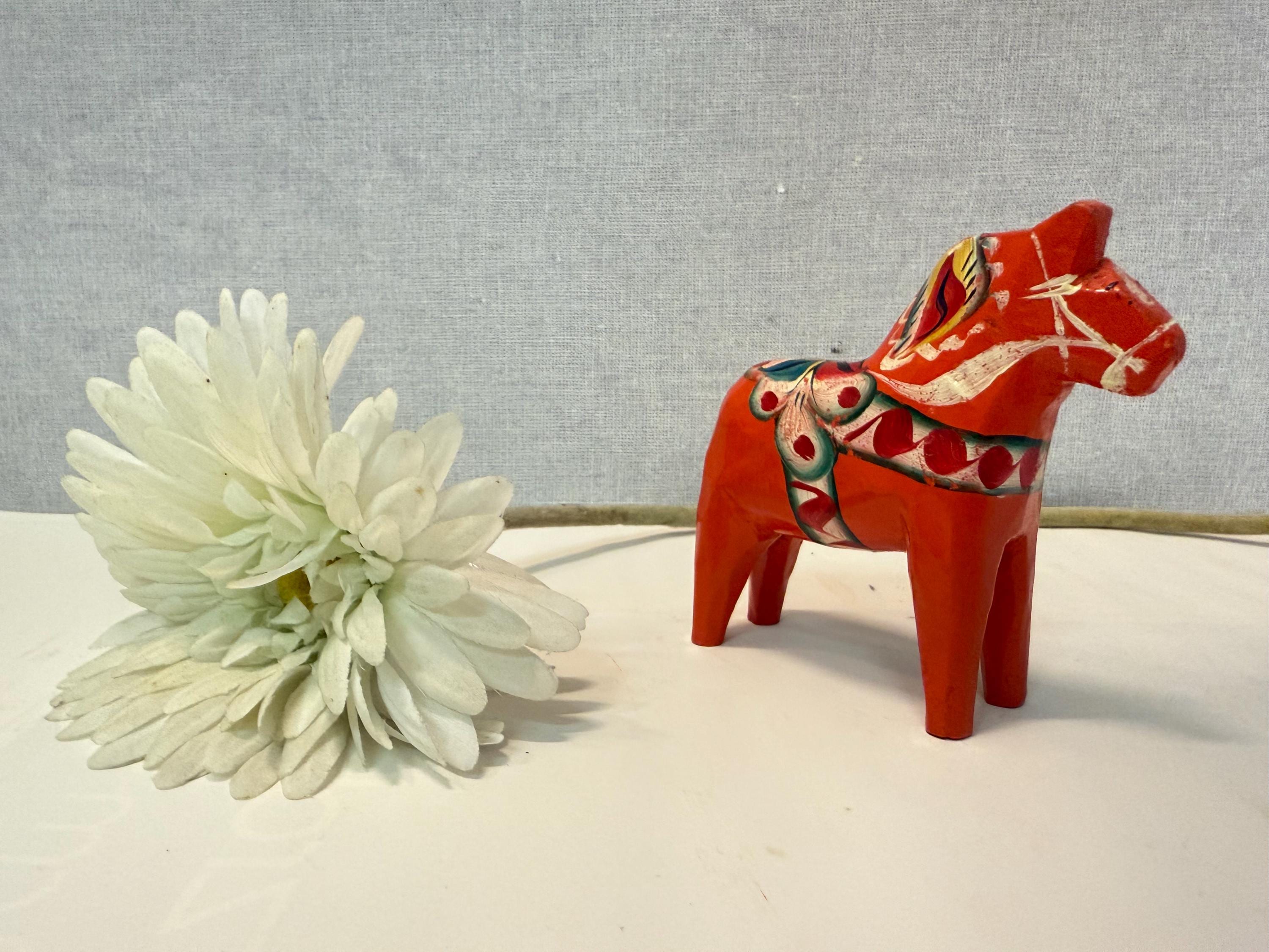Dala horse by Nils Olsson for Akta Dalahemslojd Sweden, made of wood, 1970s Mid Century Vintage