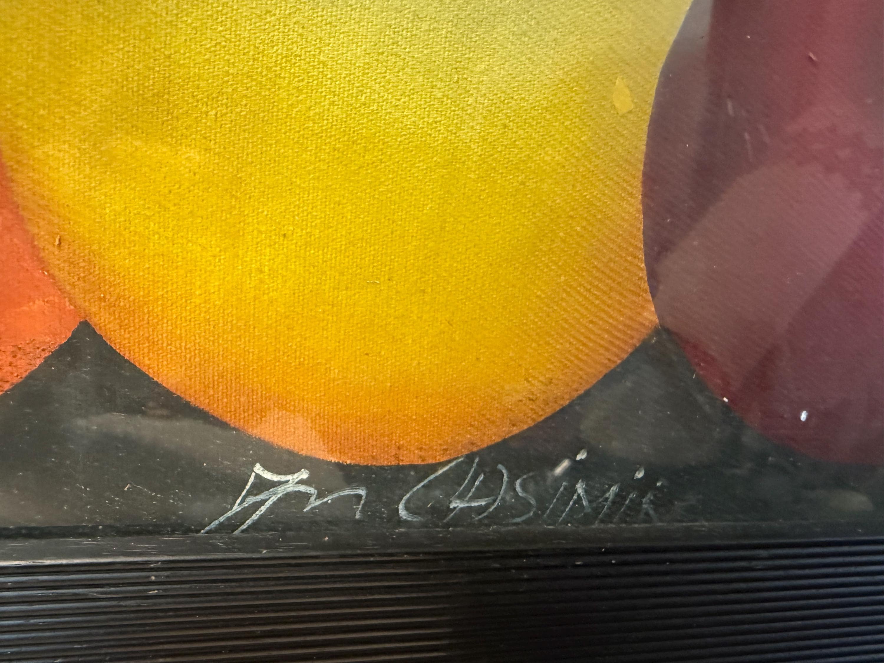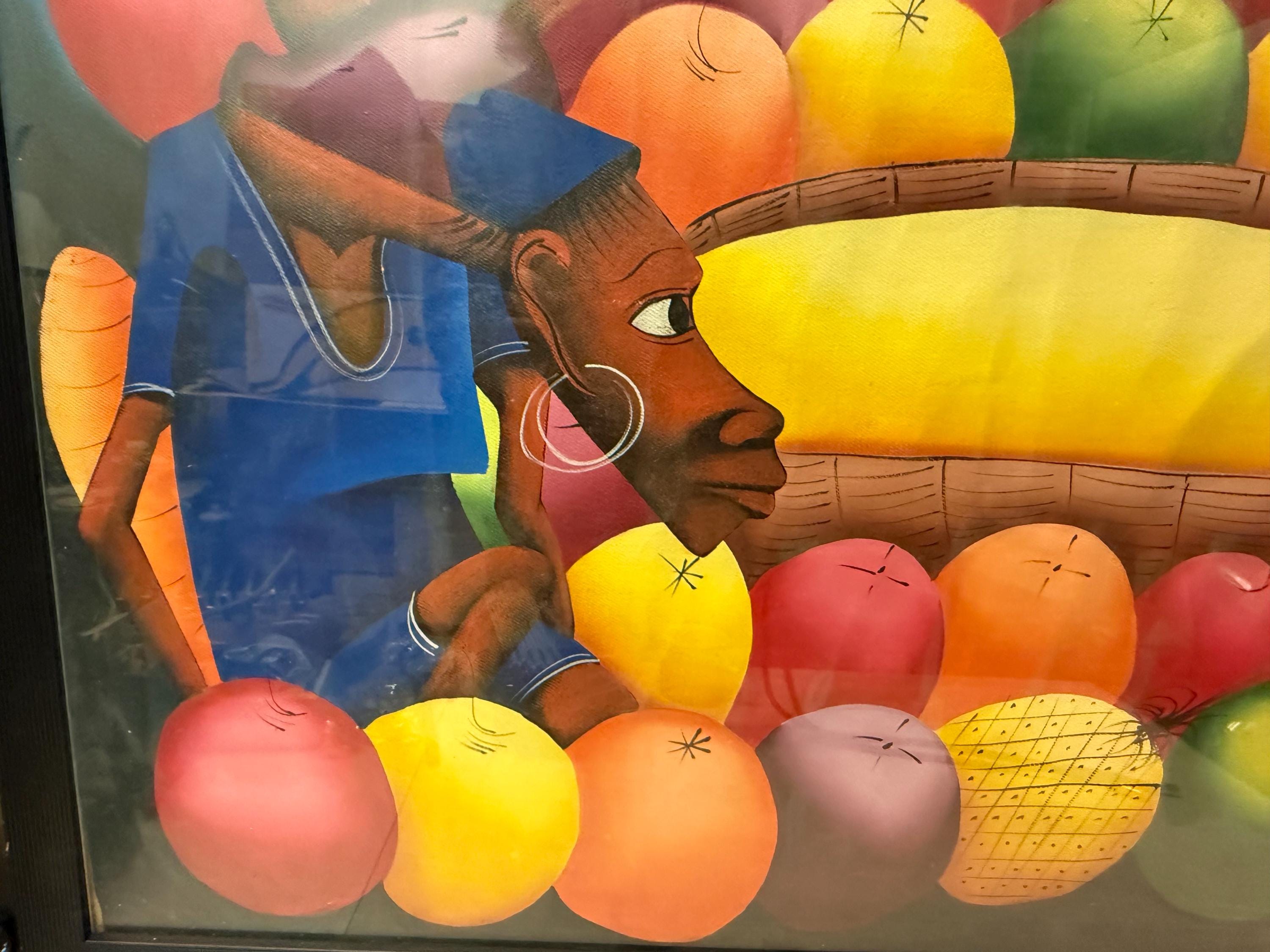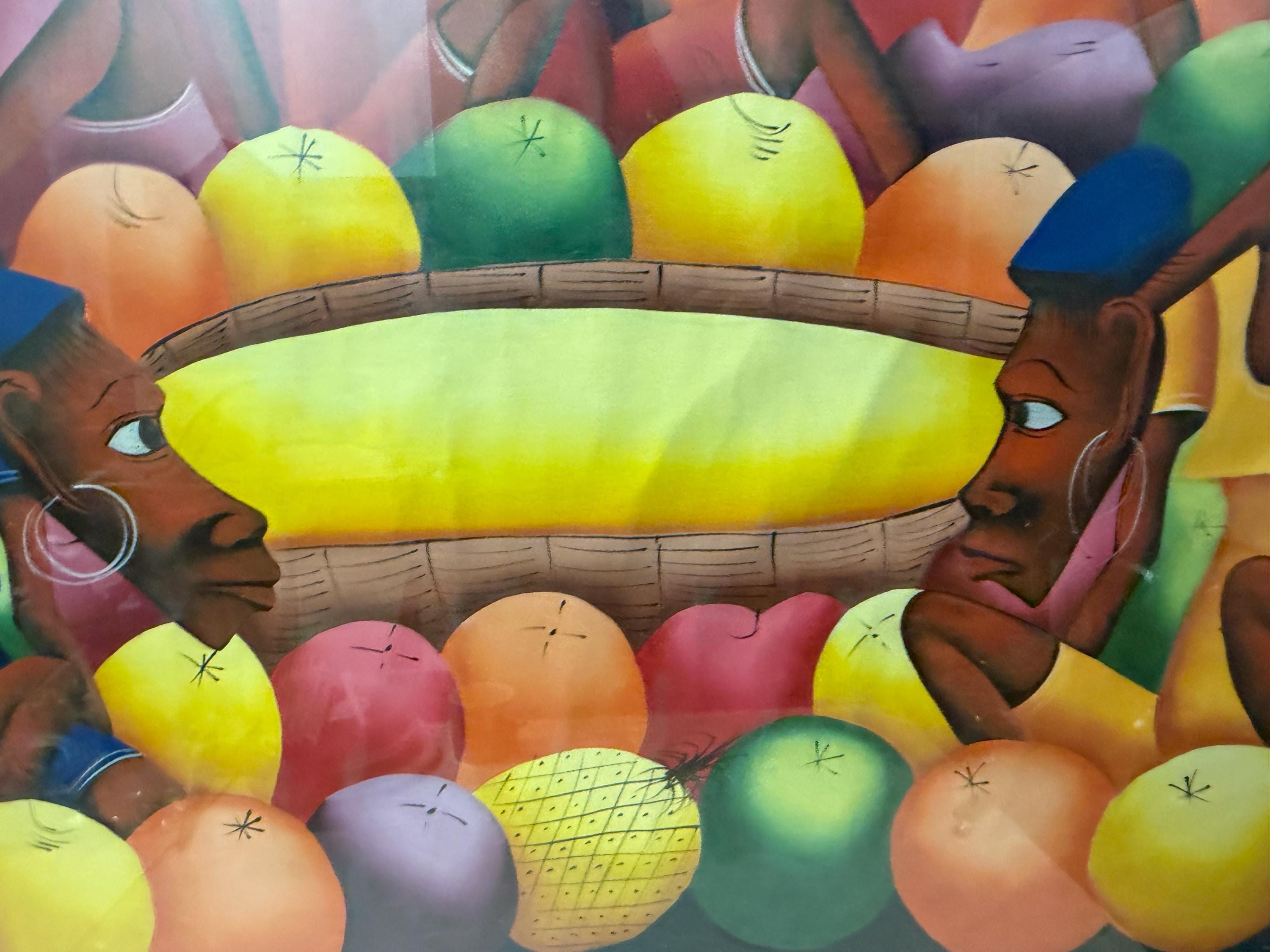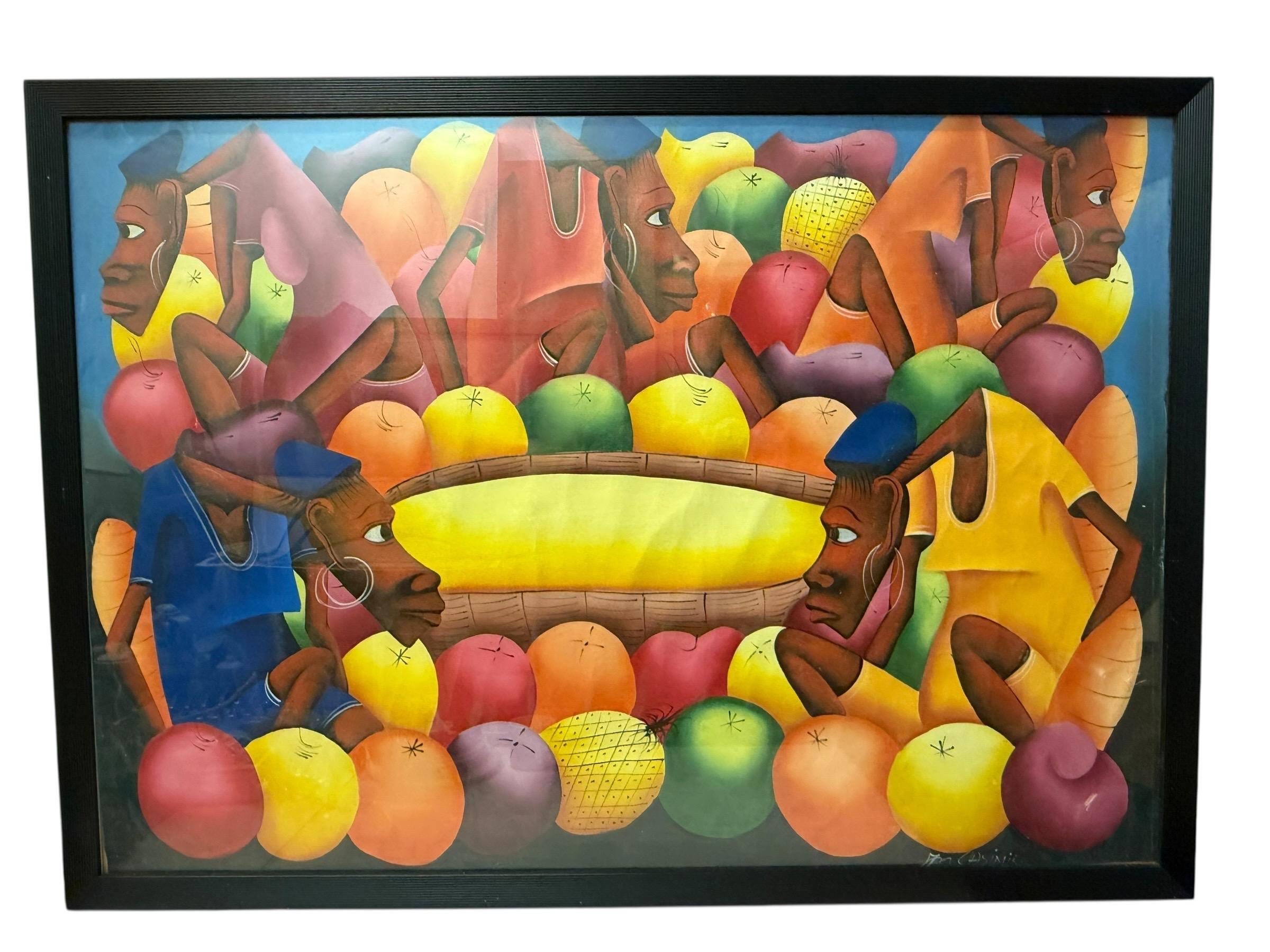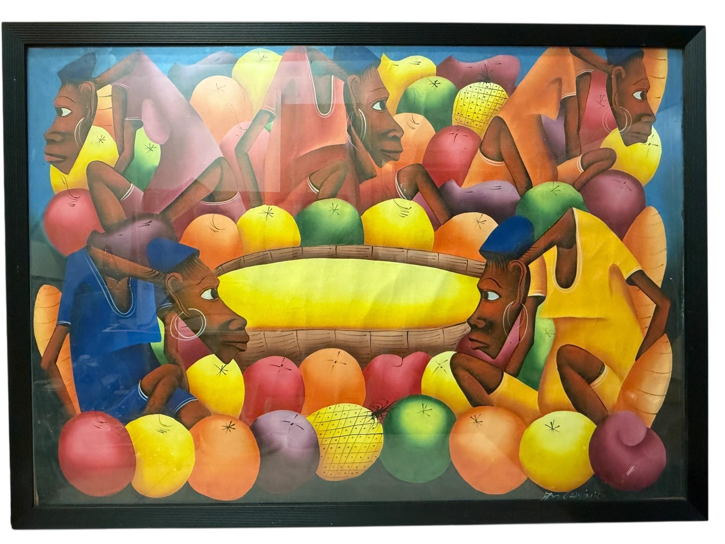 Vintage XL original oil painting by Haitian artist Laurent Casimir (1928-1990), Cubist milieu study, MCM