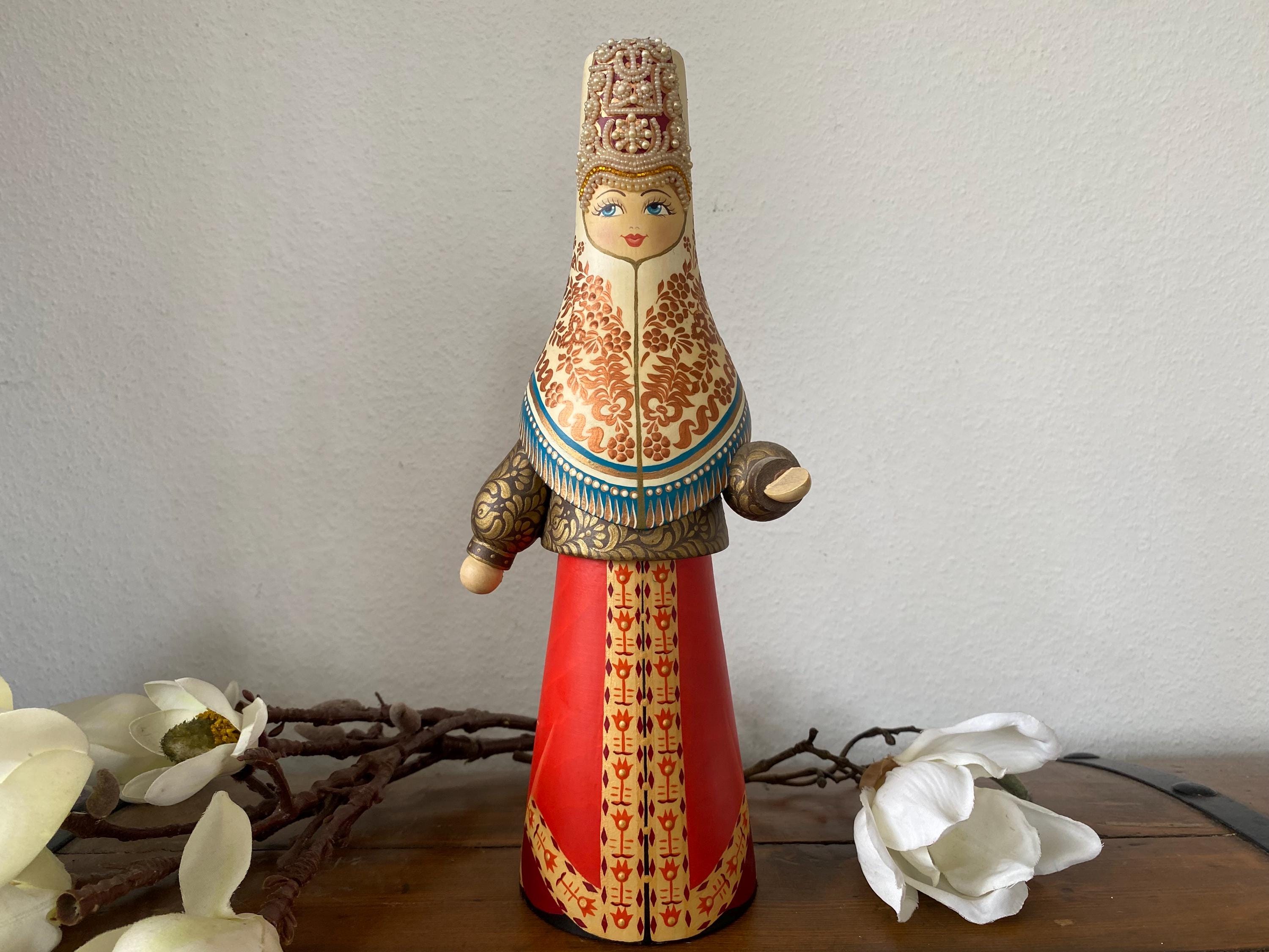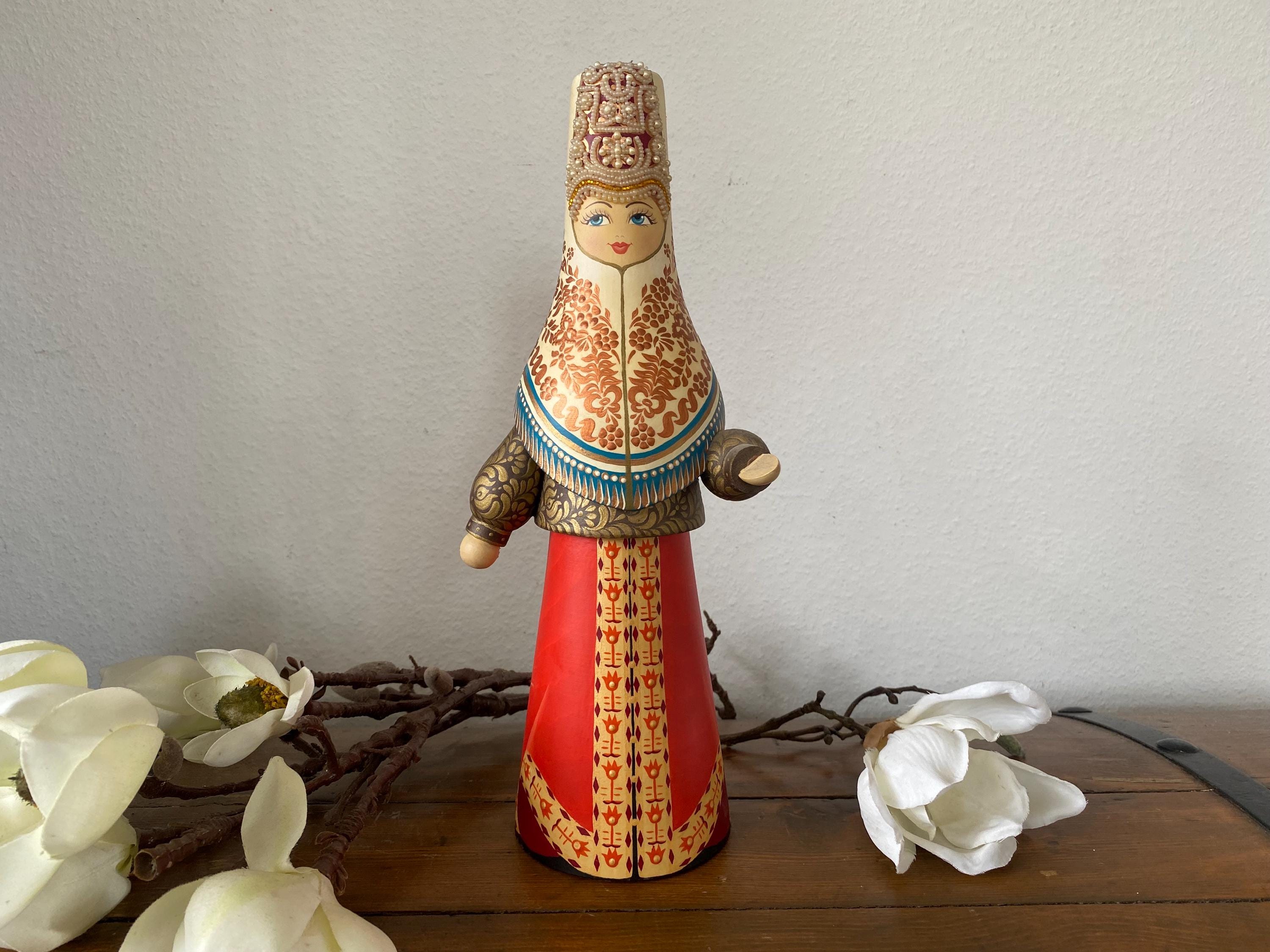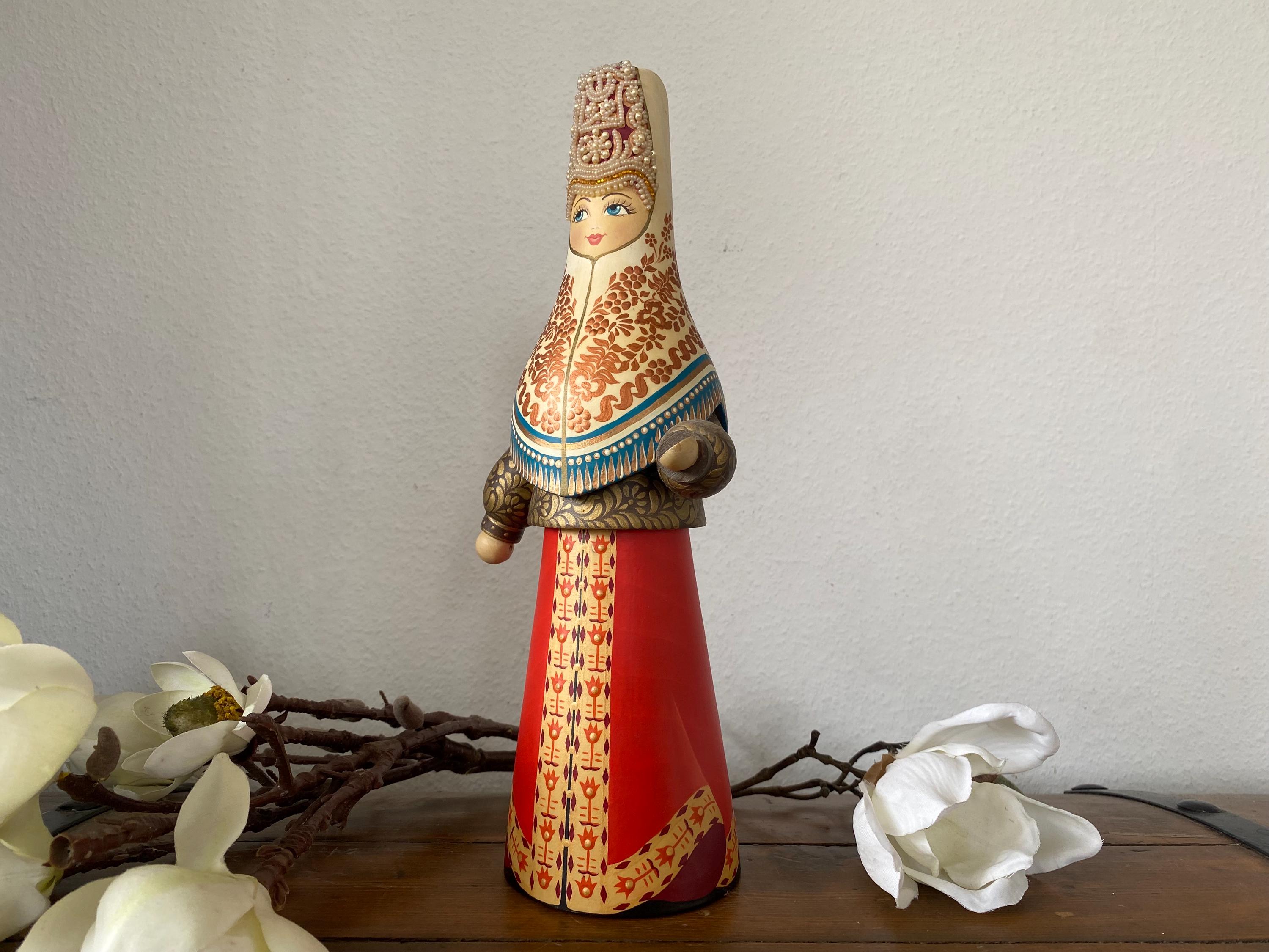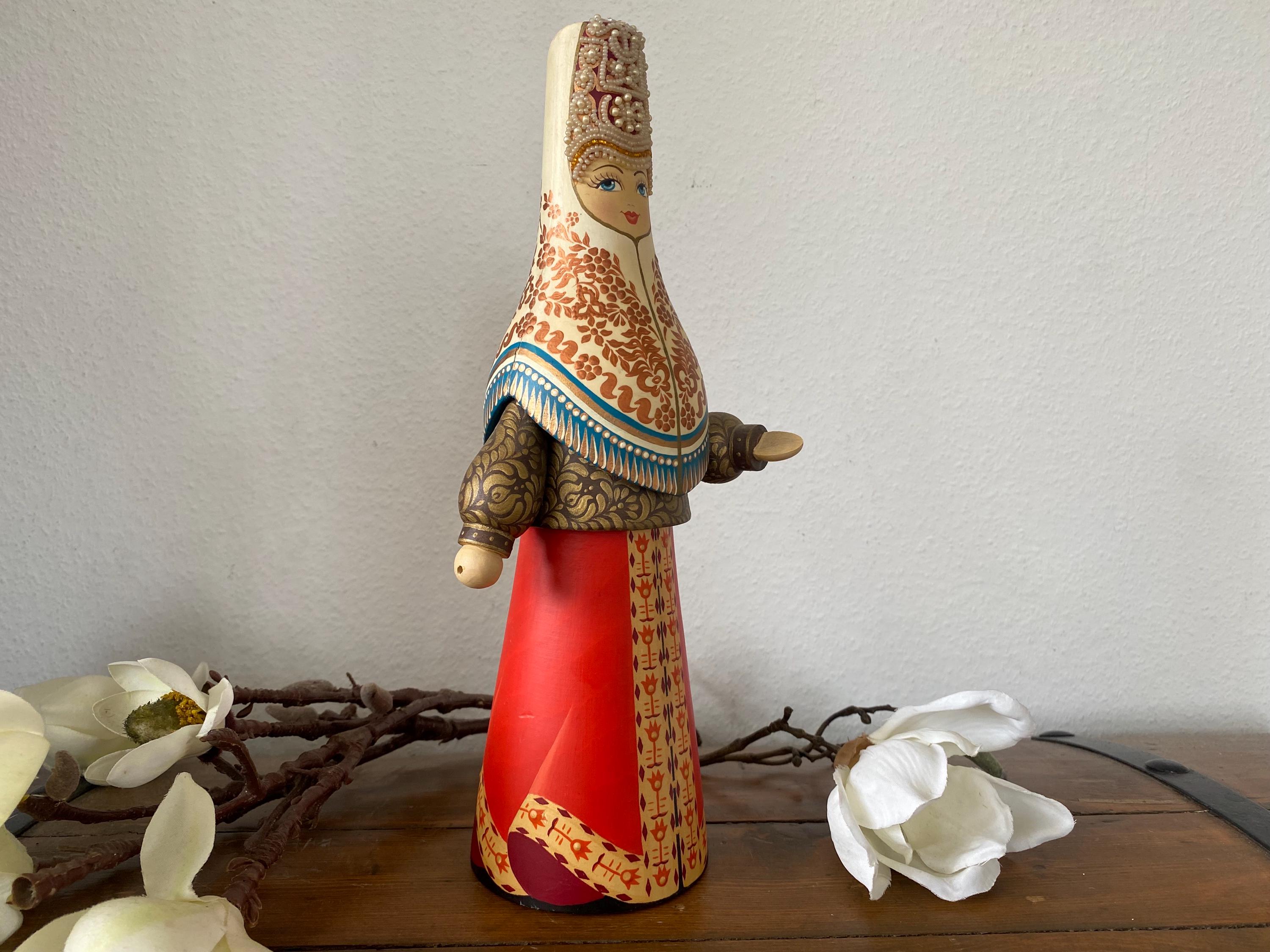 Beautiful large vintage wooden doll – Tverskoy Uzor – traditional hand-painted – Russian. Rare model.