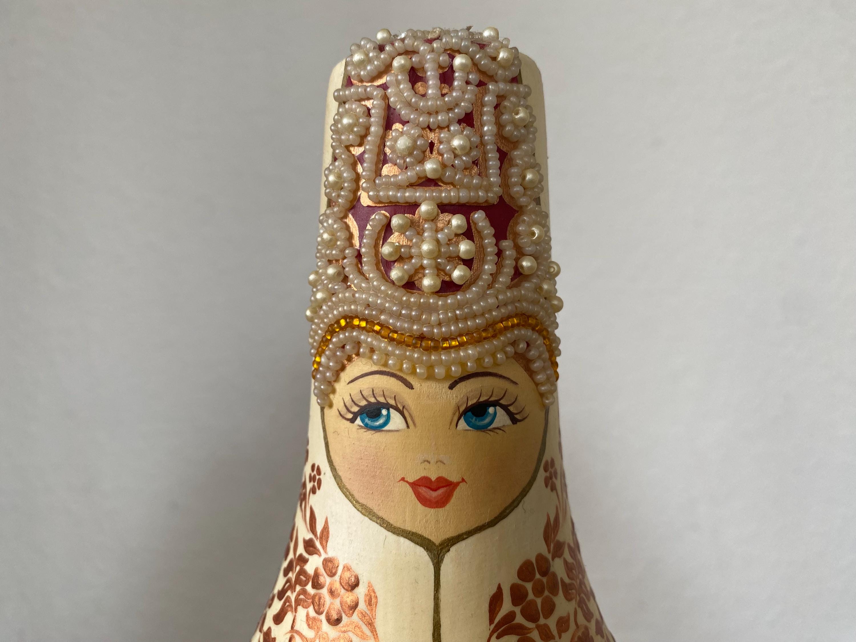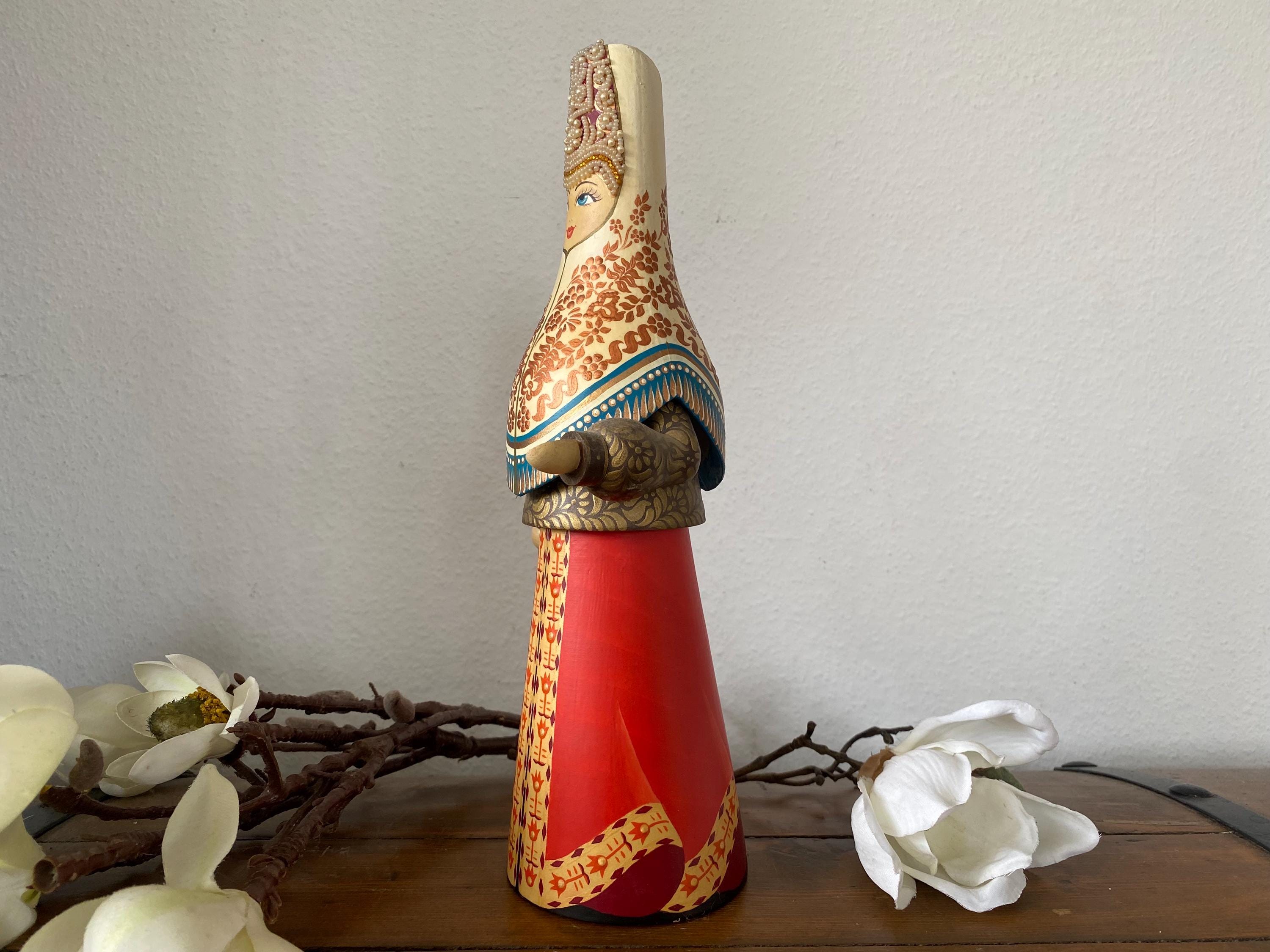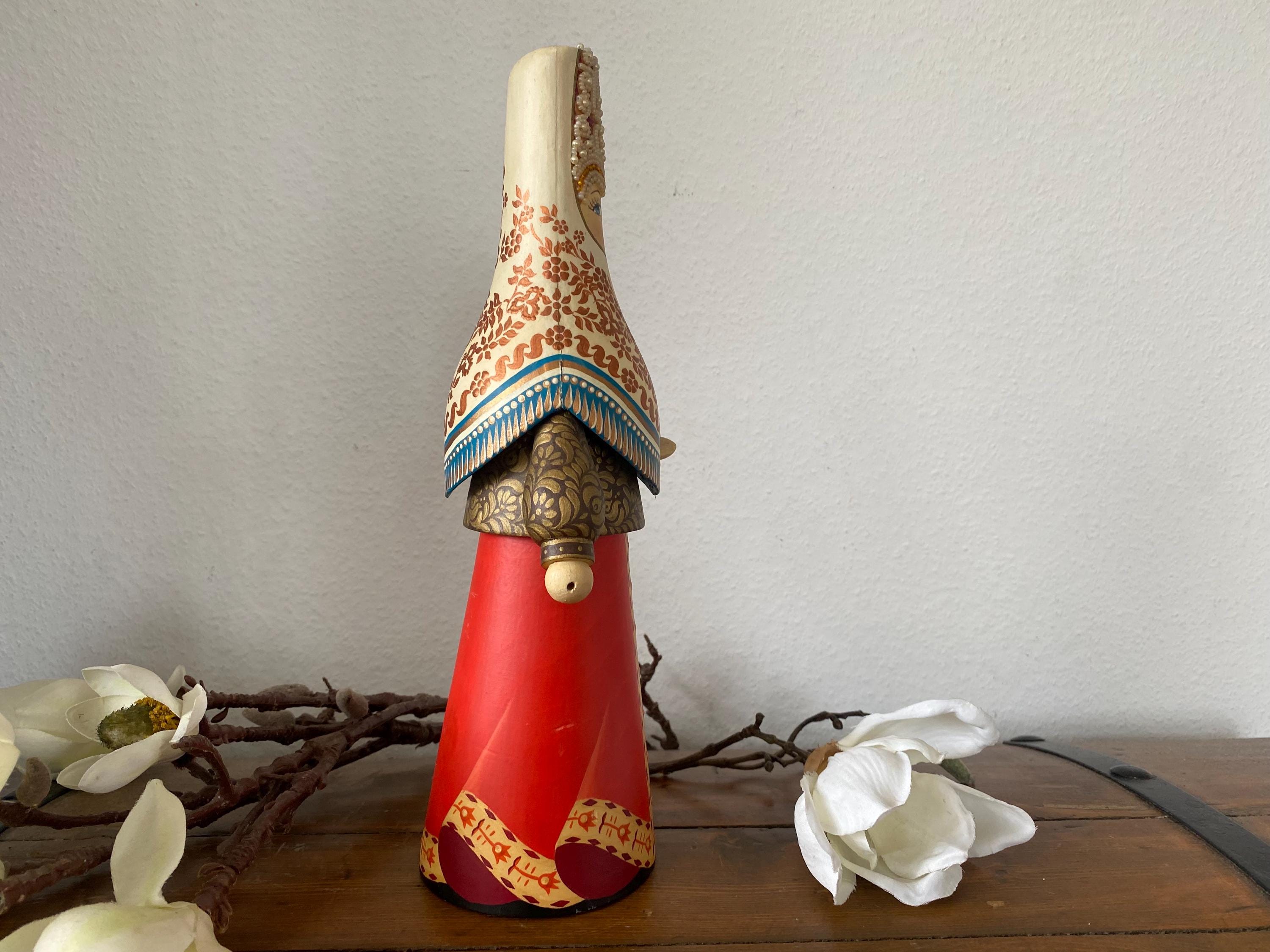 Beautiful large vintage wooden doll – Tverskoy Uzor – traditional hand-painted – Russian. Rare model.