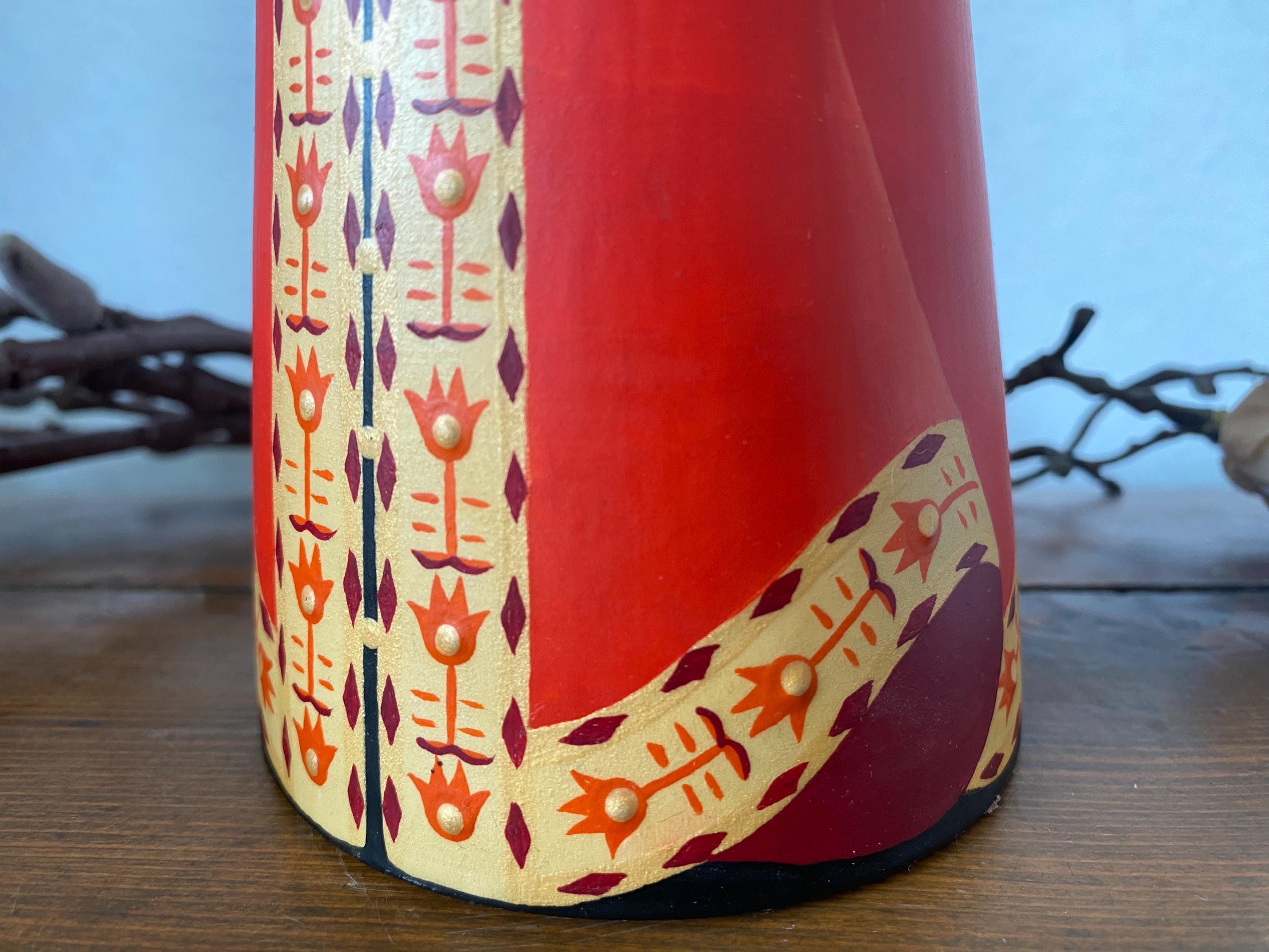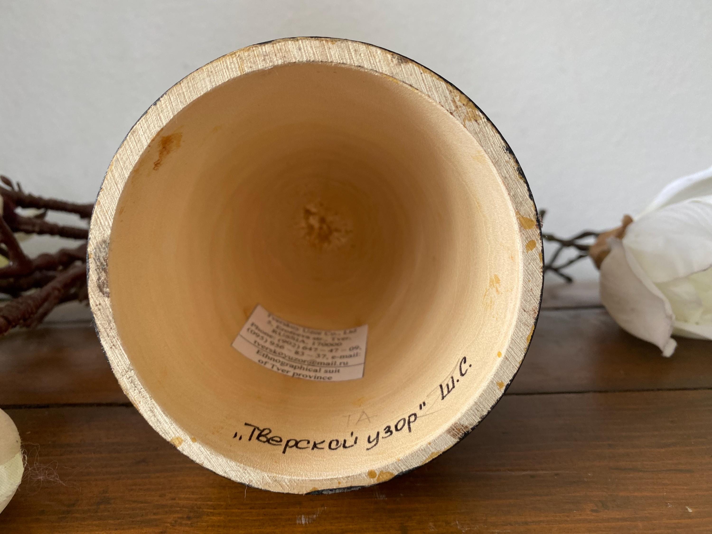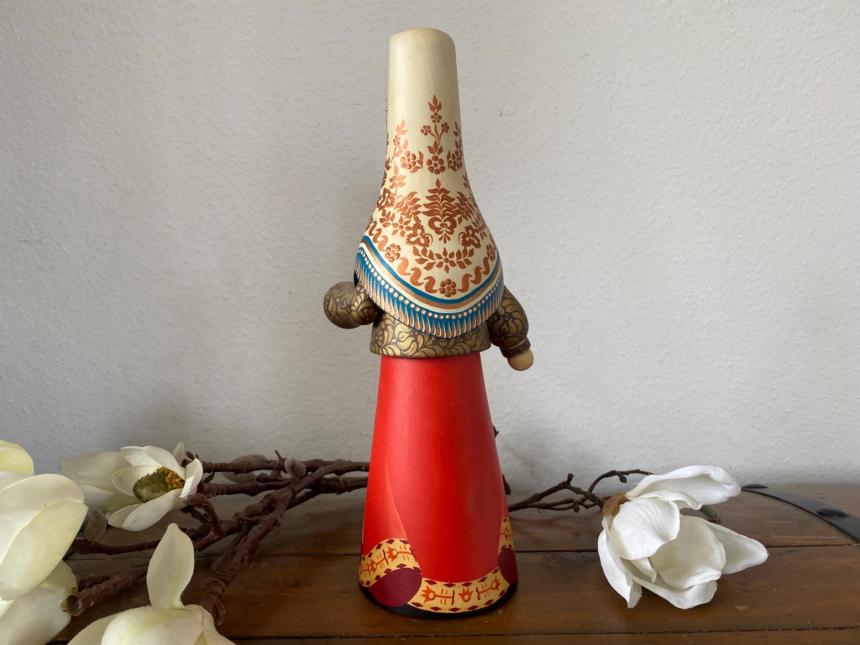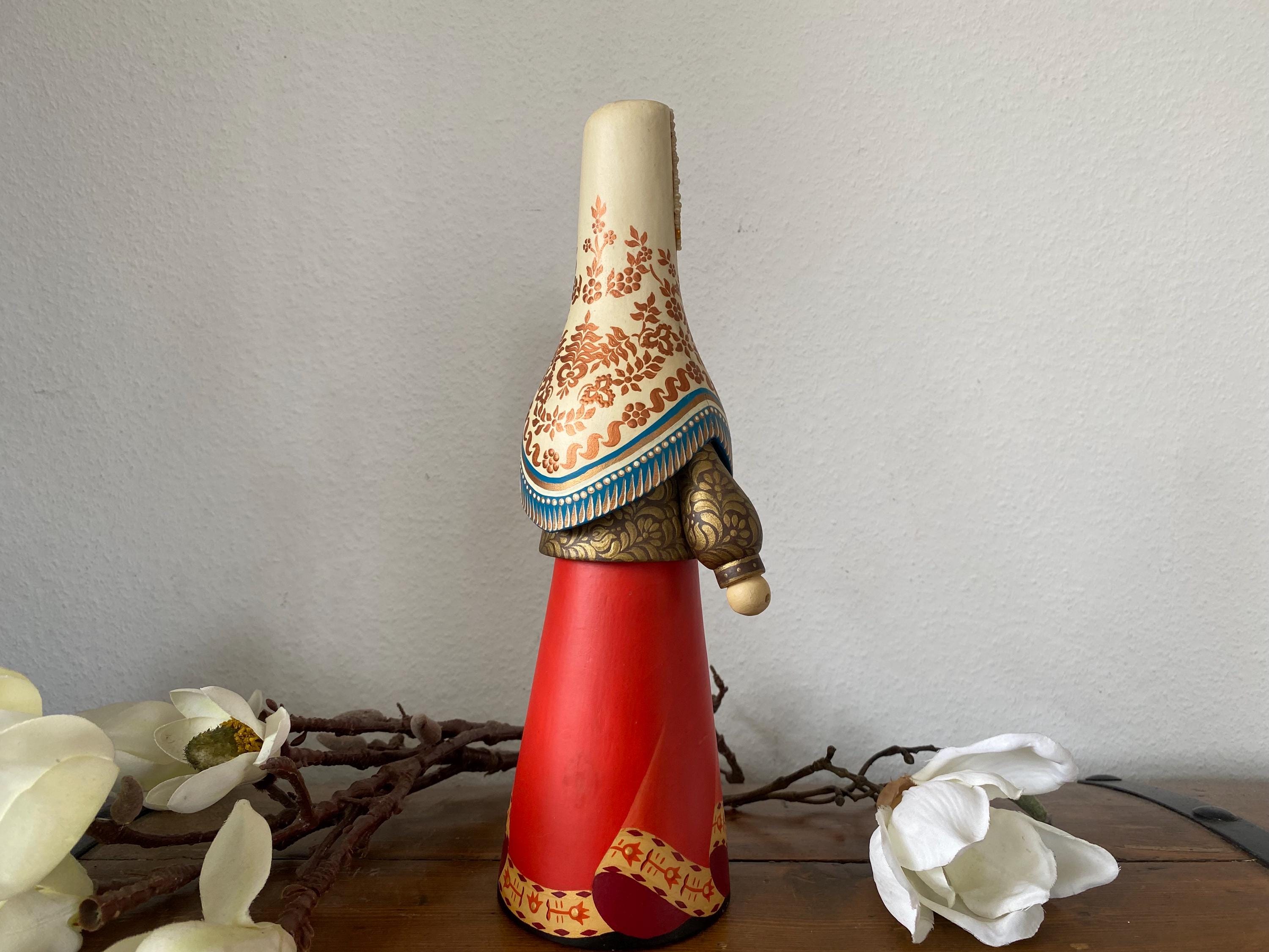 Beautiful large vintage wooden doll – Tverskoy Uzor – traditional hand-painted – Russian. Rare model.