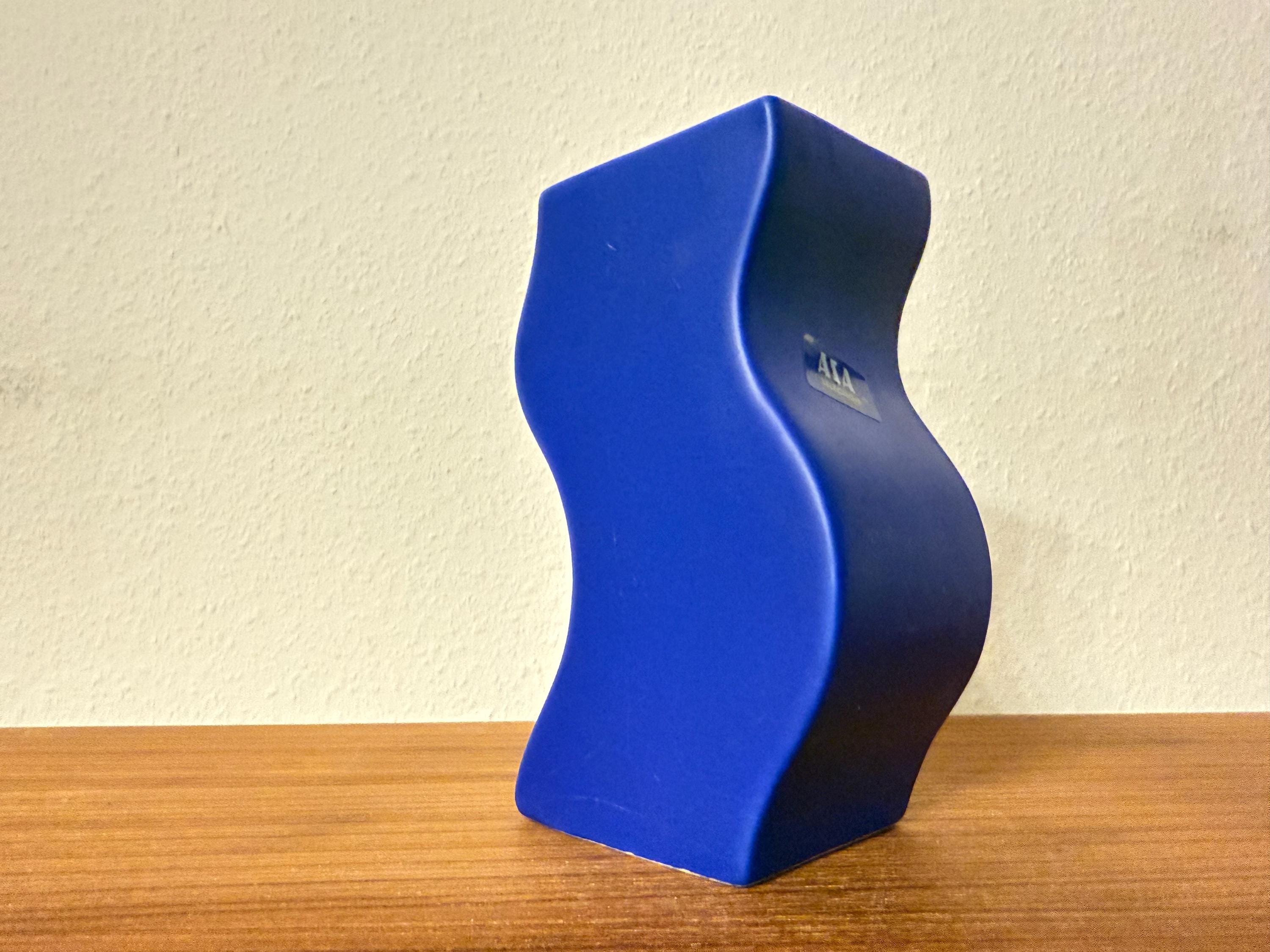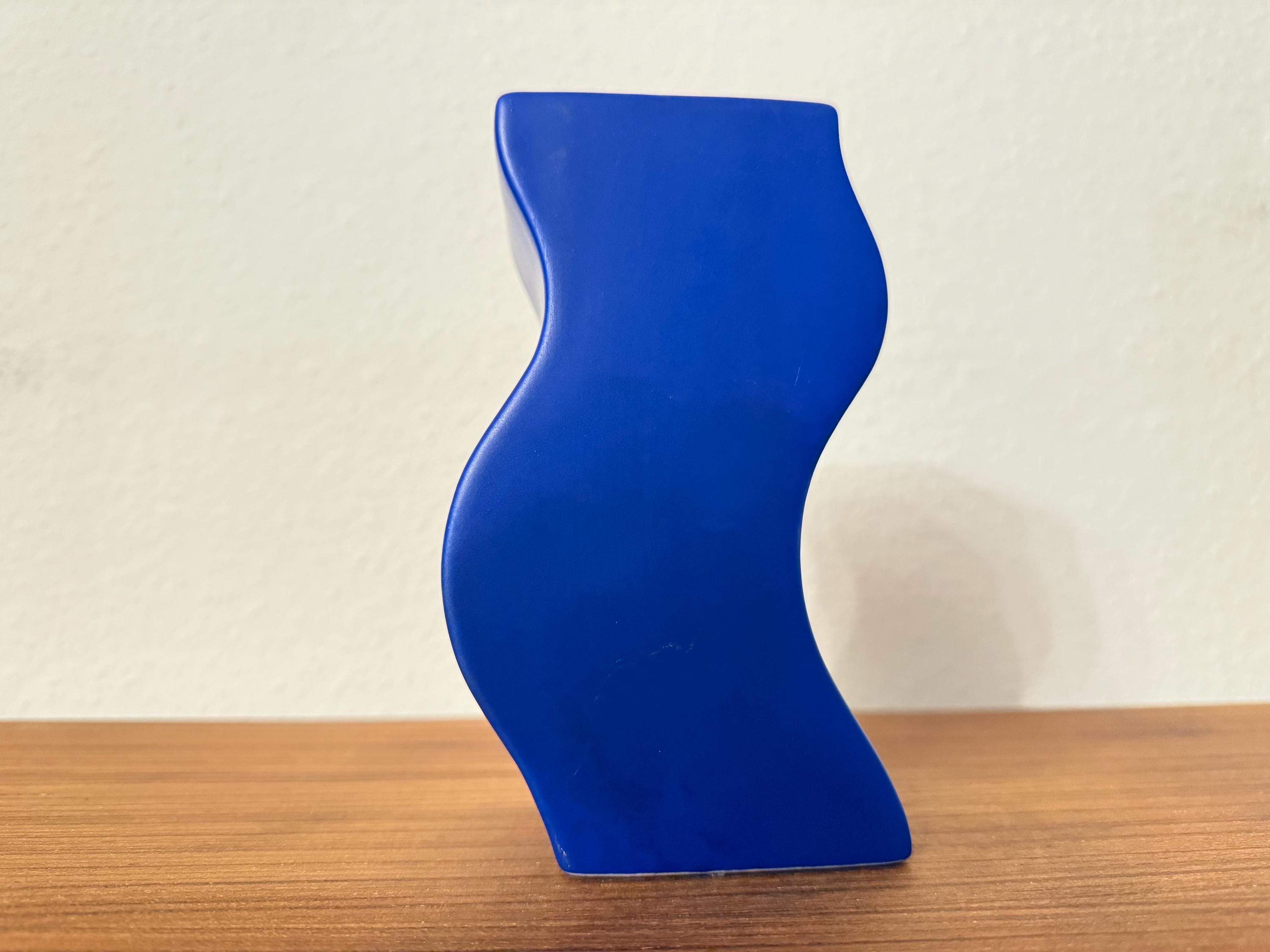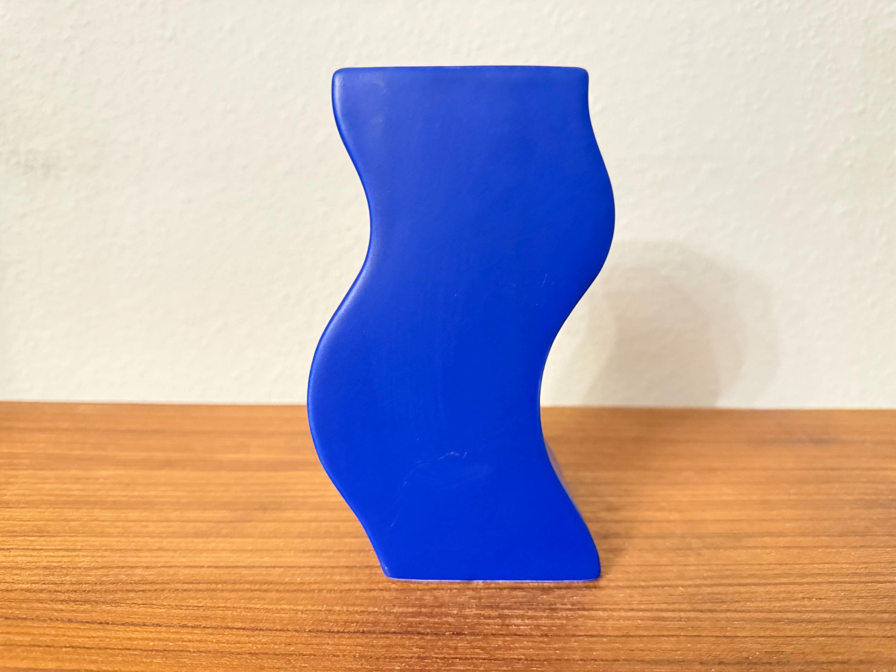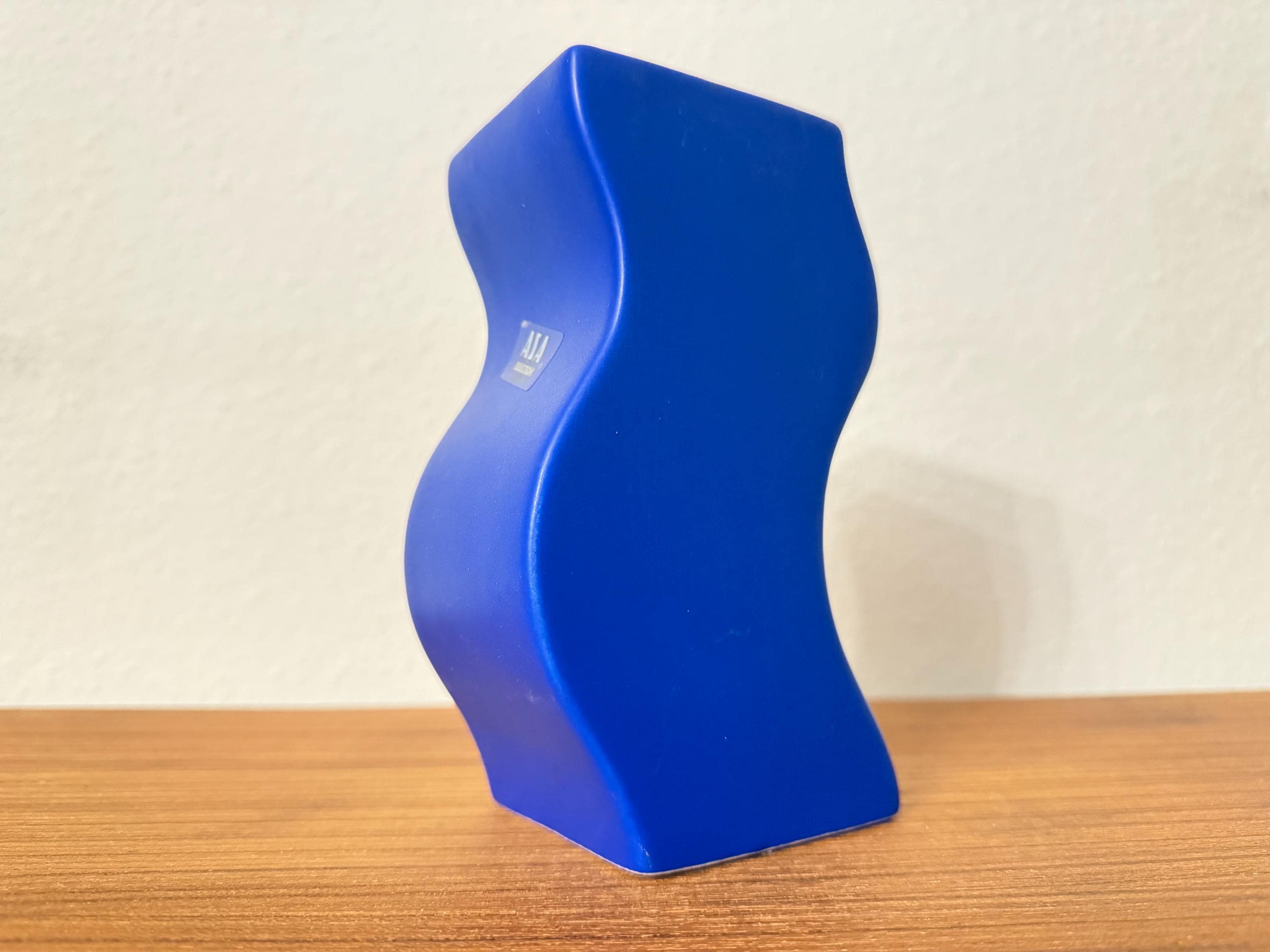 A beautiful, intensely blue, postmodern vase by ASA Selection with a wavy outline that takes on different shapes depending on the viewing angle. Vintage from the 1980s.