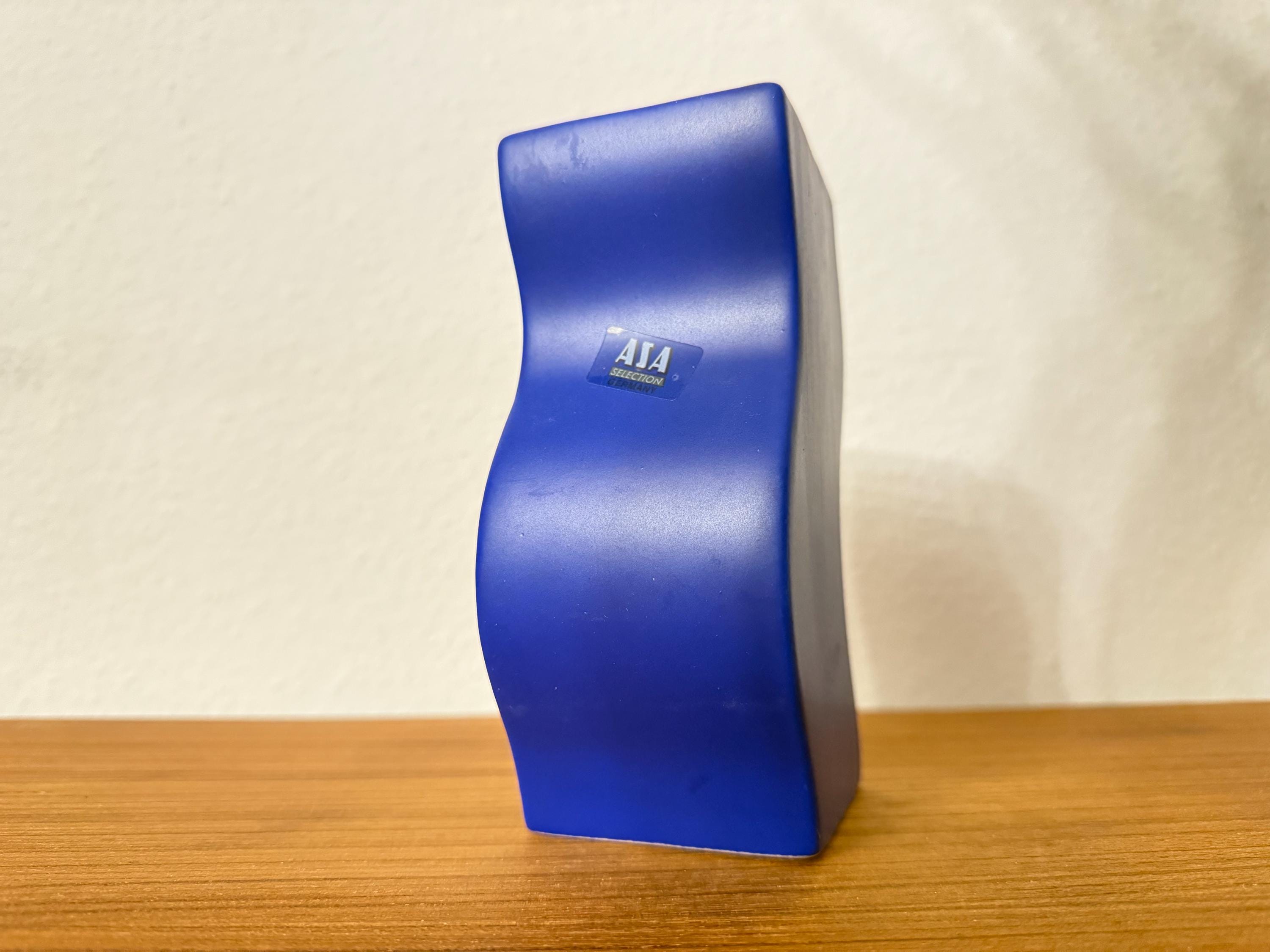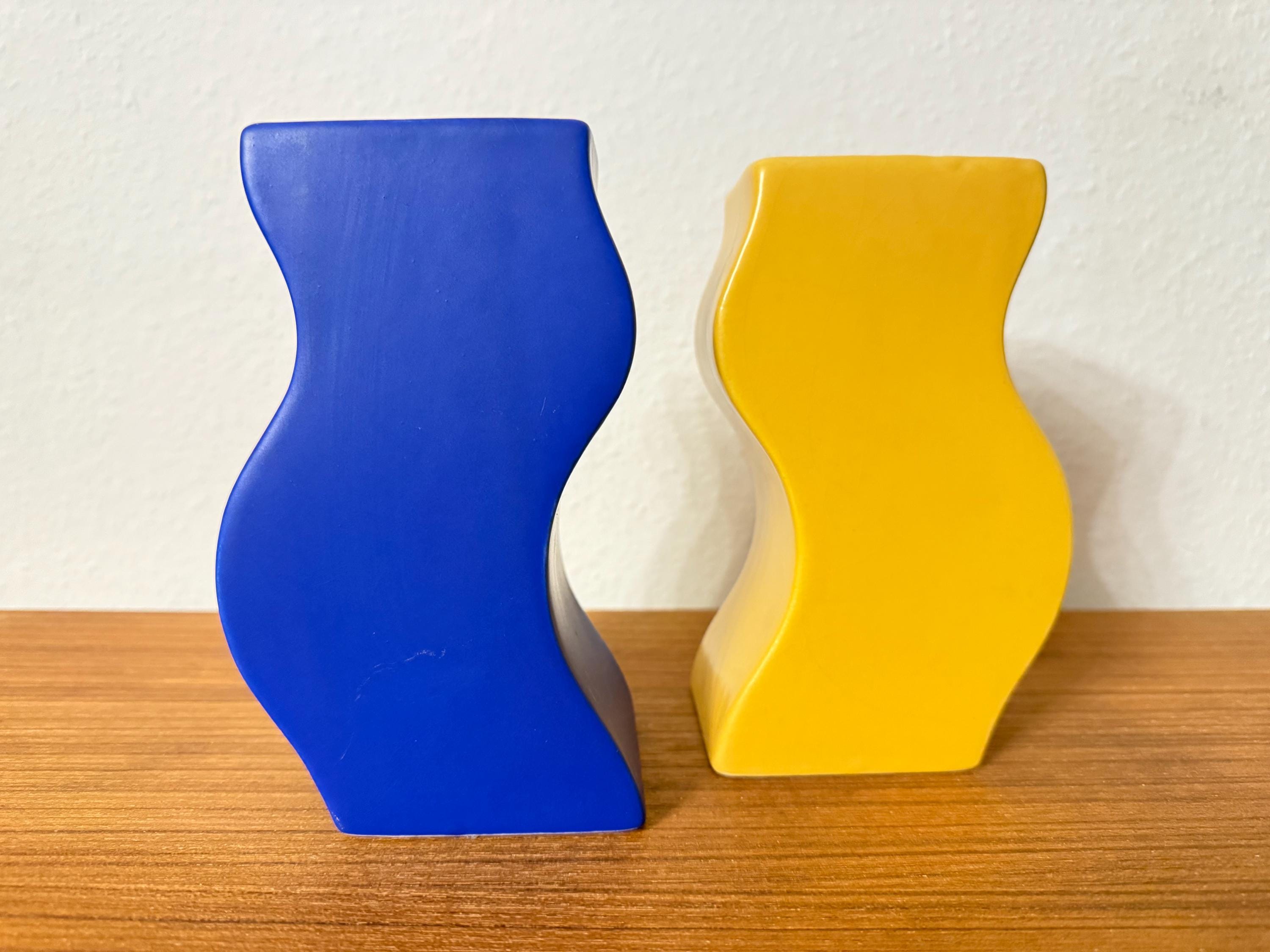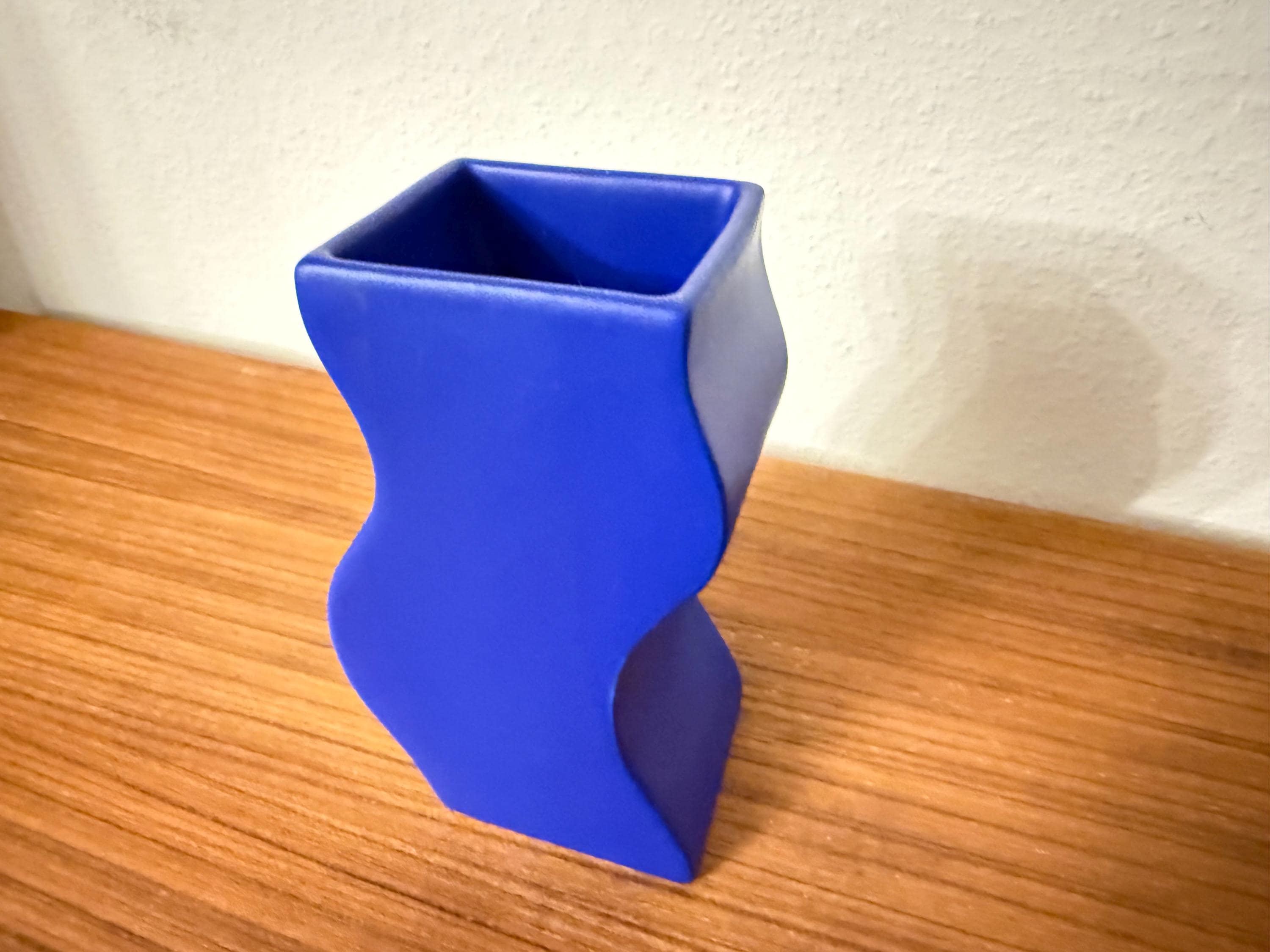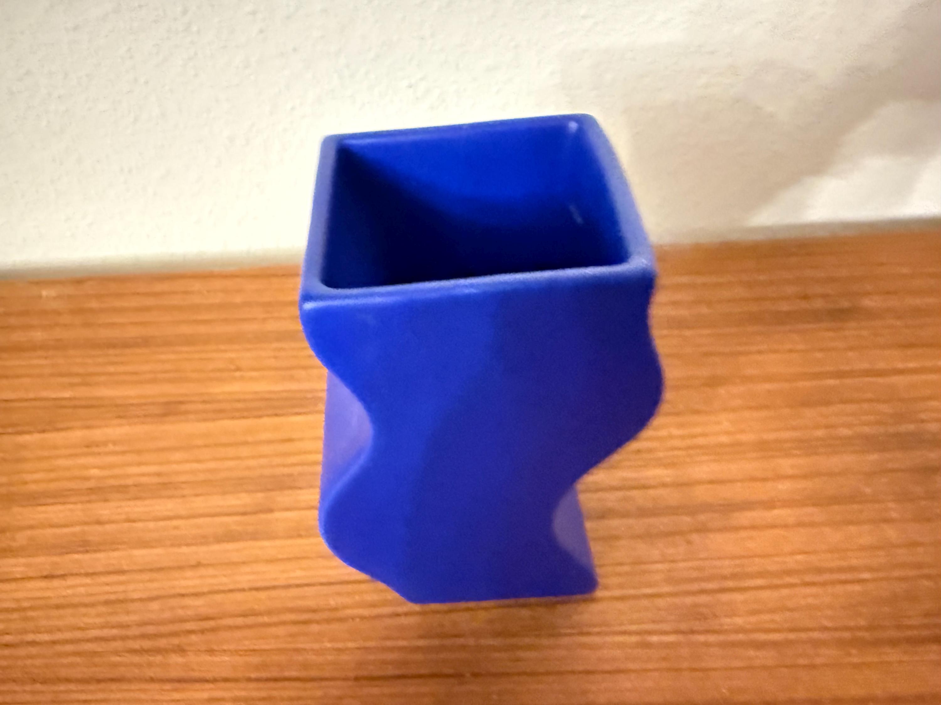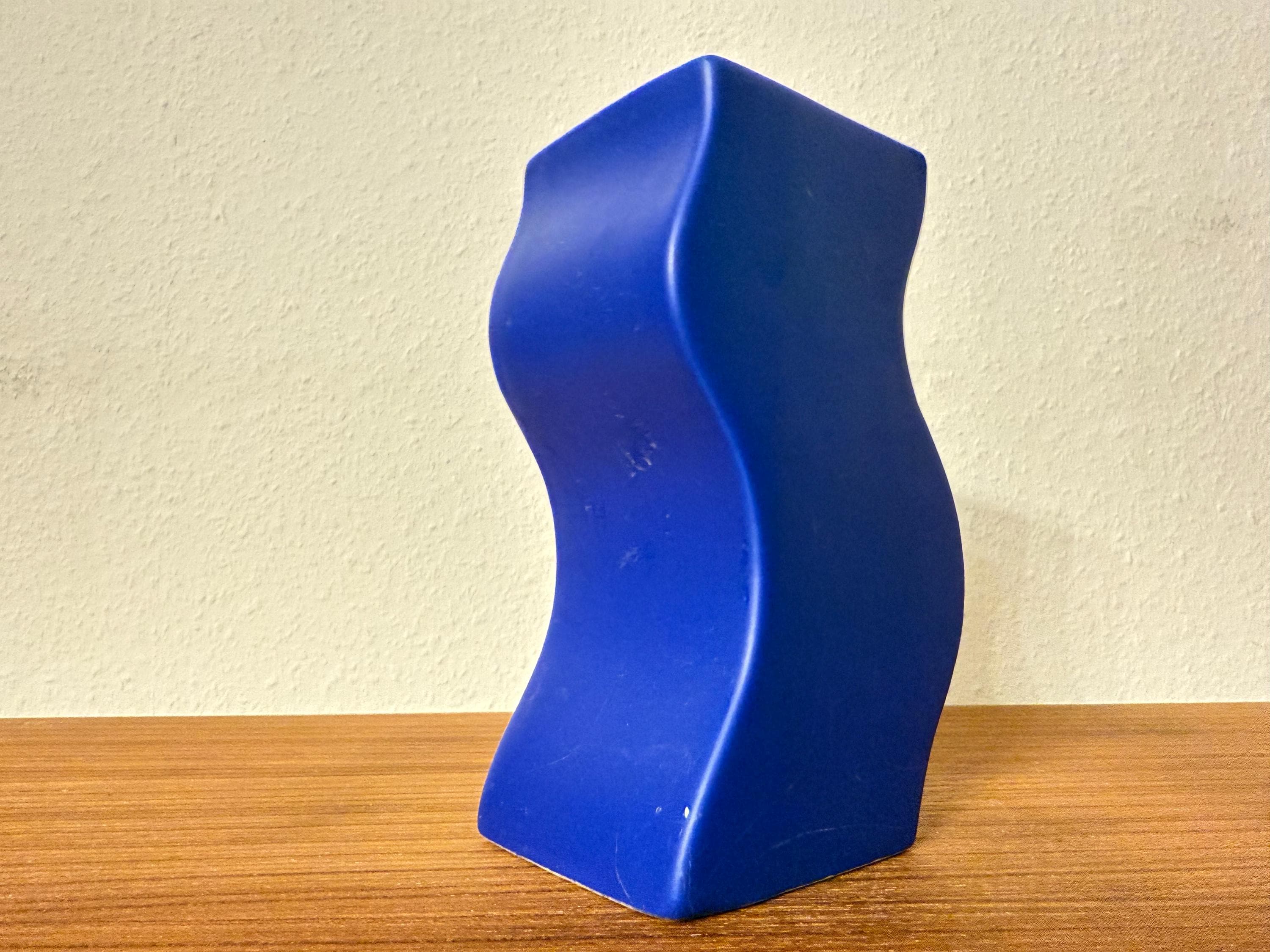 A beautiful, intensely blue, postmodern vase by ASA Selection with a wavy outline that takes on different shapes depending on the viewing angle. Vintage from the 1980s.