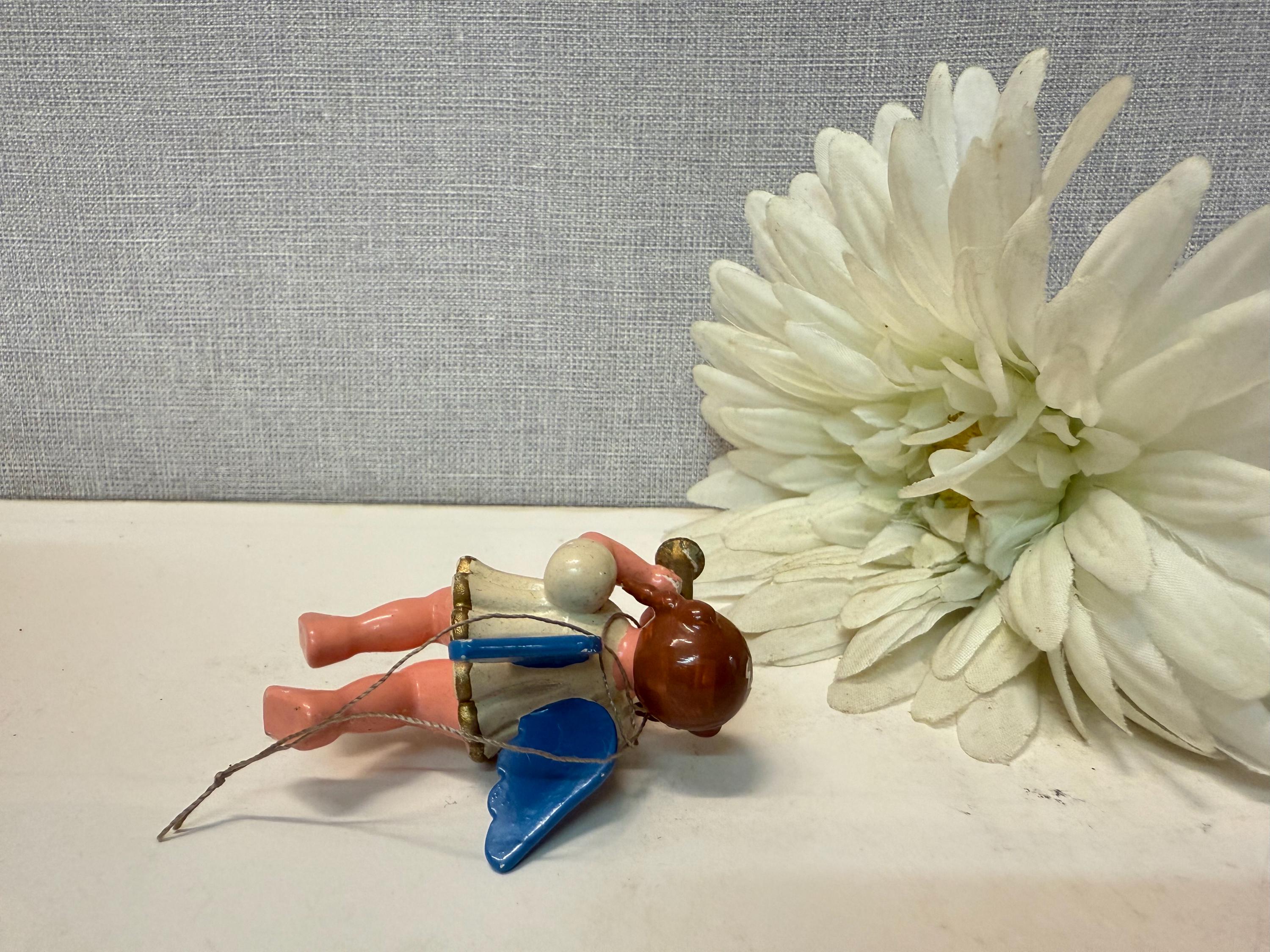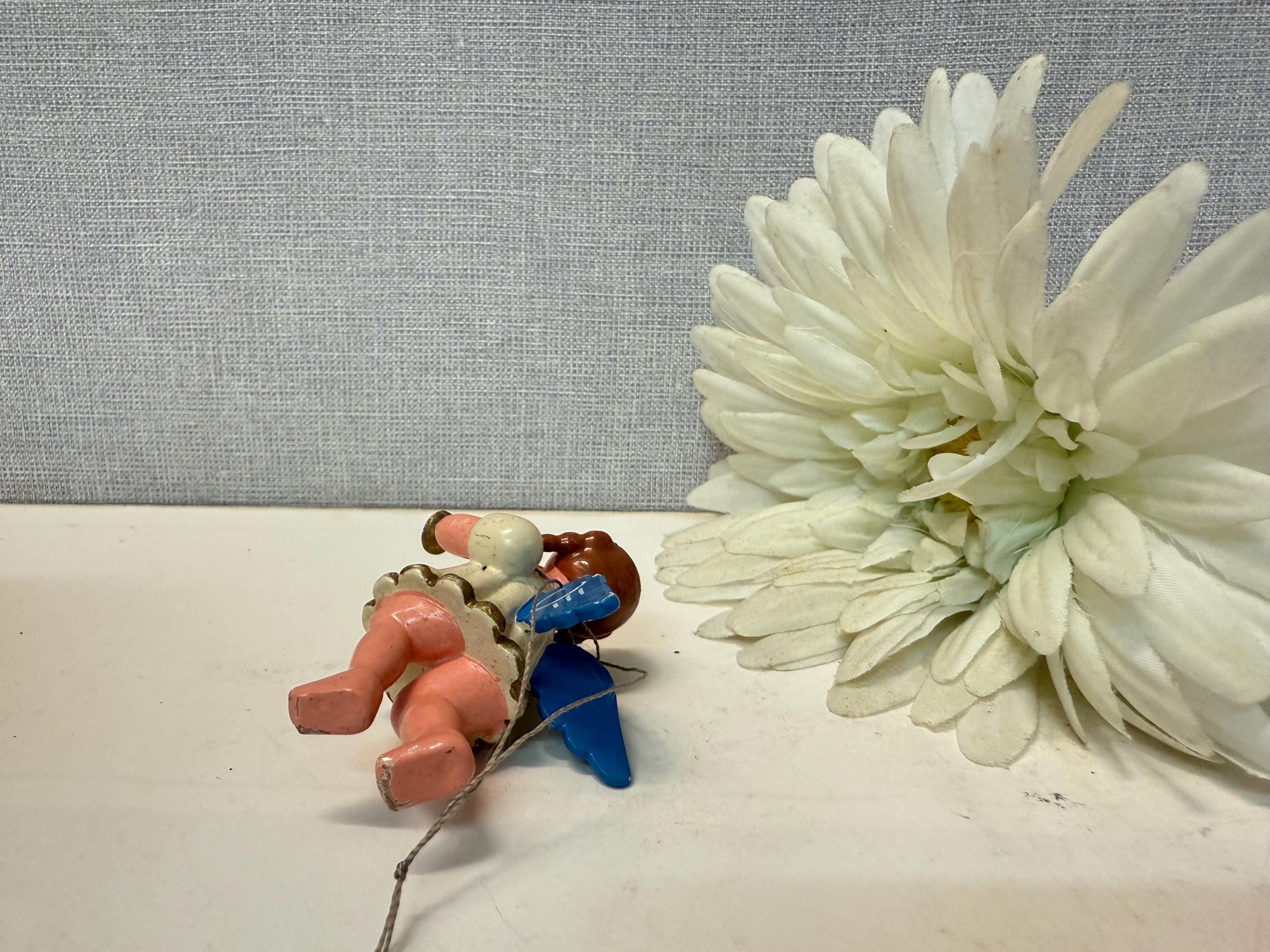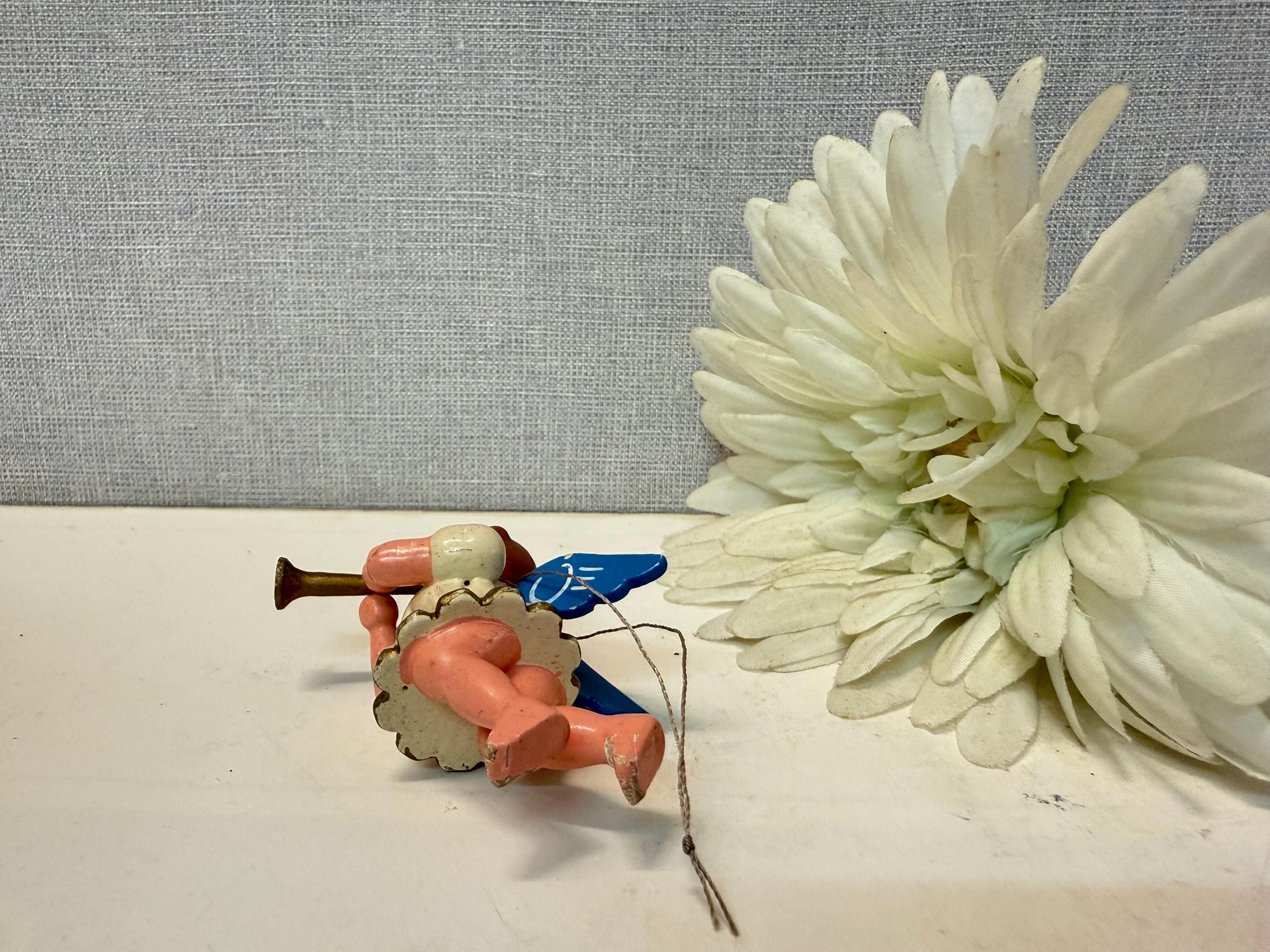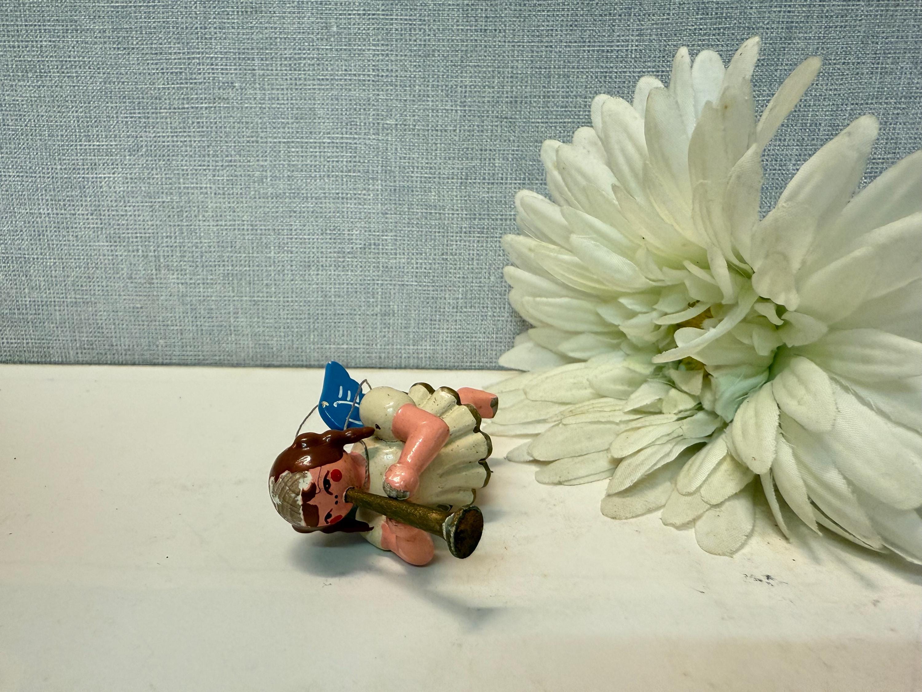 Beautiful old vintage angel with horn for hanging, from the Ore Mountains by Kühne and Wendt
