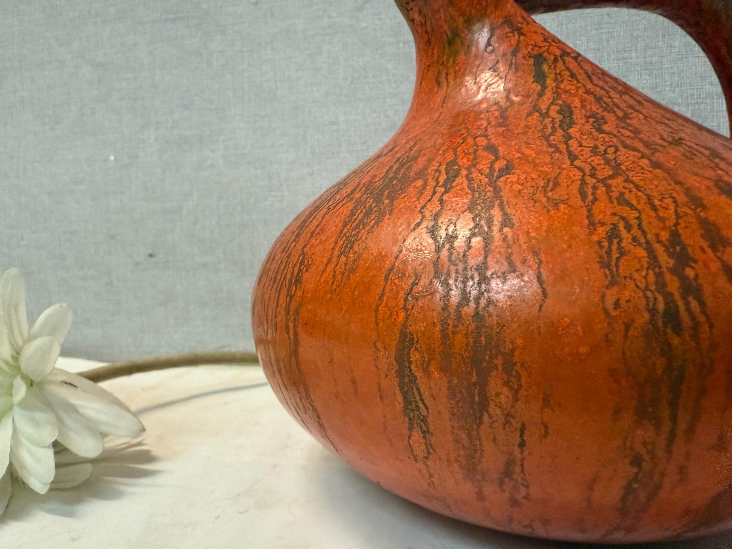 A beautiful melange of red and black – the Vulkano decor – adorns this stunning Ruscha 313 vase.